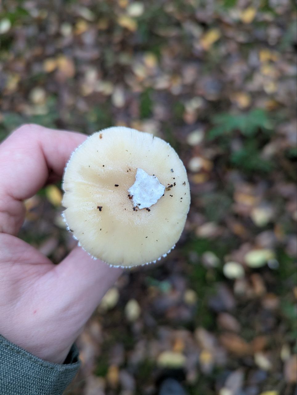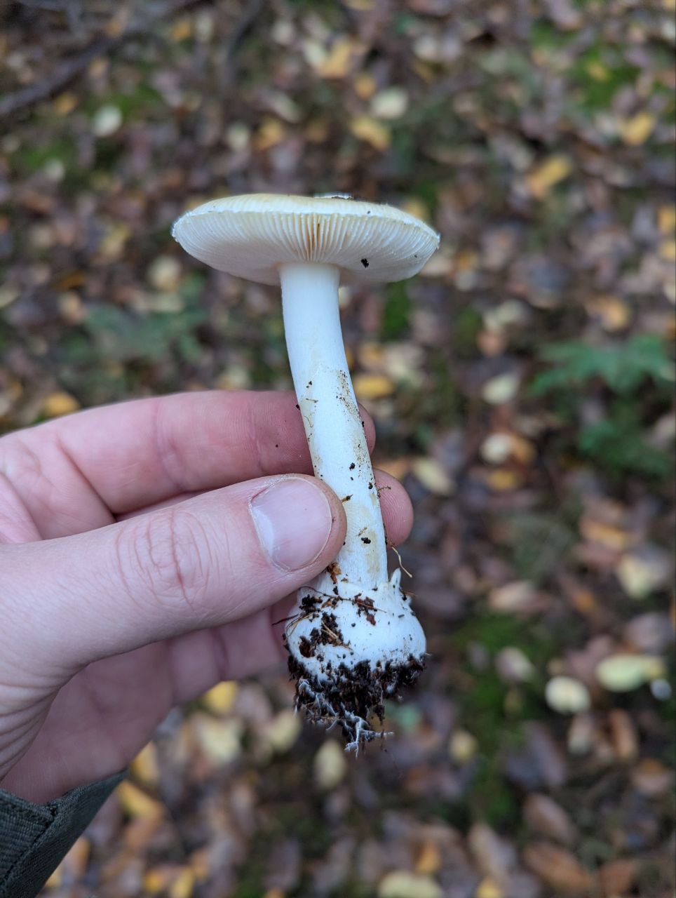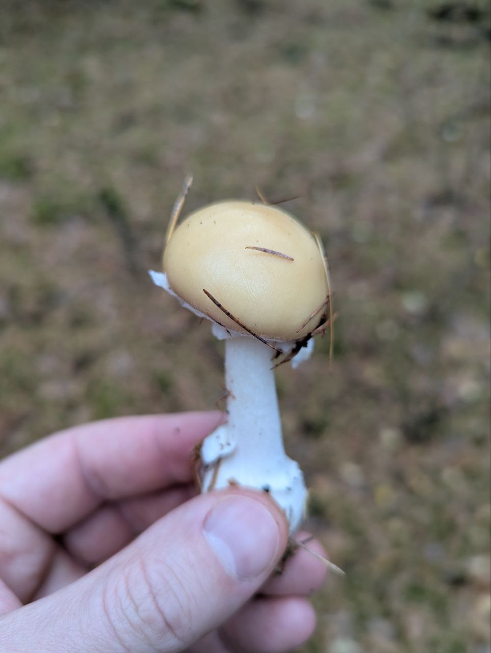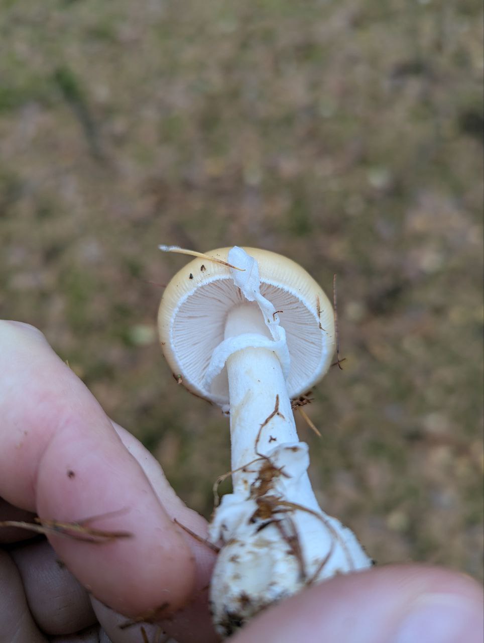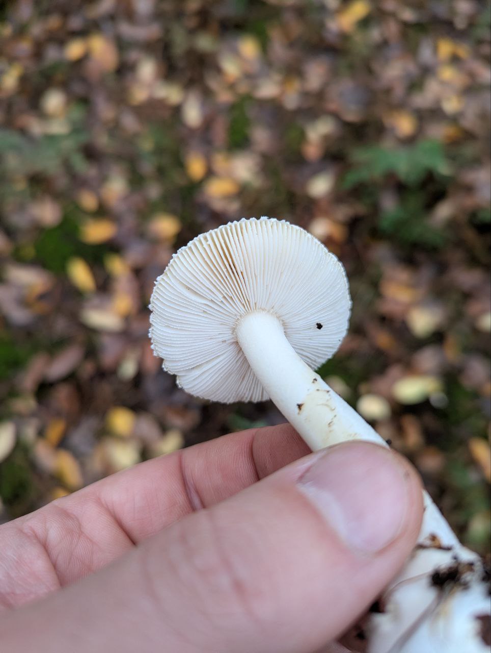 Описание гриба: Нахожу довольно много таких грибов. Обычно стоят по 2-3 штуки. Похожи на поплавки, но вот у маленького вроде кольцо есть. На шляпке если и есть пятна, то одно большое в центре. Возможно это 2 разных вида гриба, конечно.
