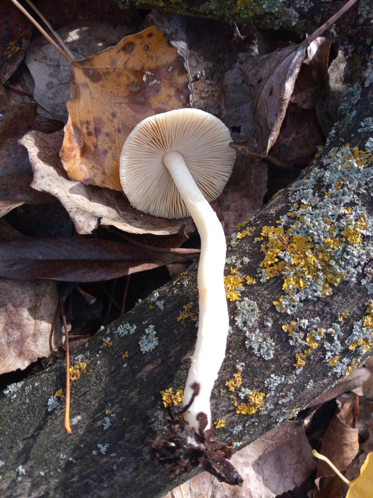 Описание гриба: Грибы росли на листовом опаде у реки Днестр. Молоденький весь слизистый и от этой слизи блестит,на фото не видно. Предполагаю что лимацелла масляная,но не уверен.