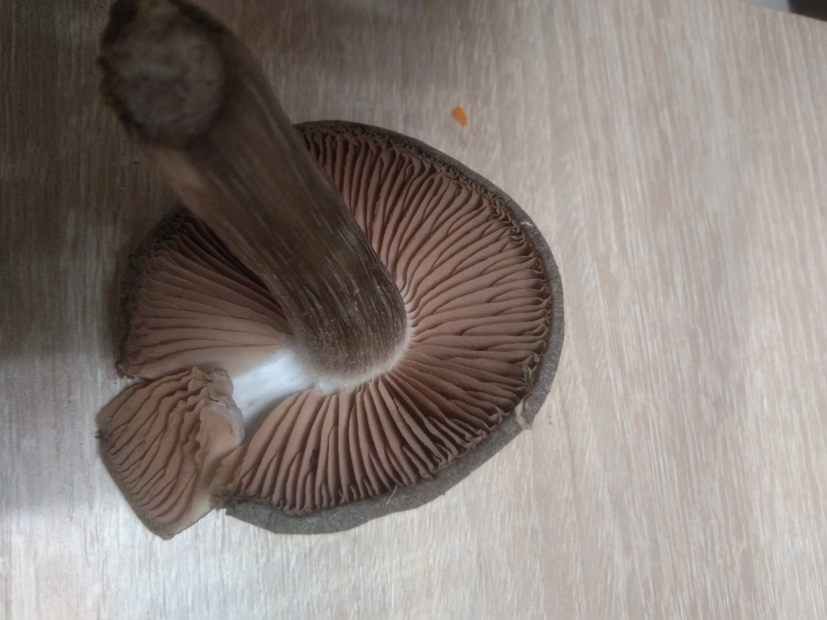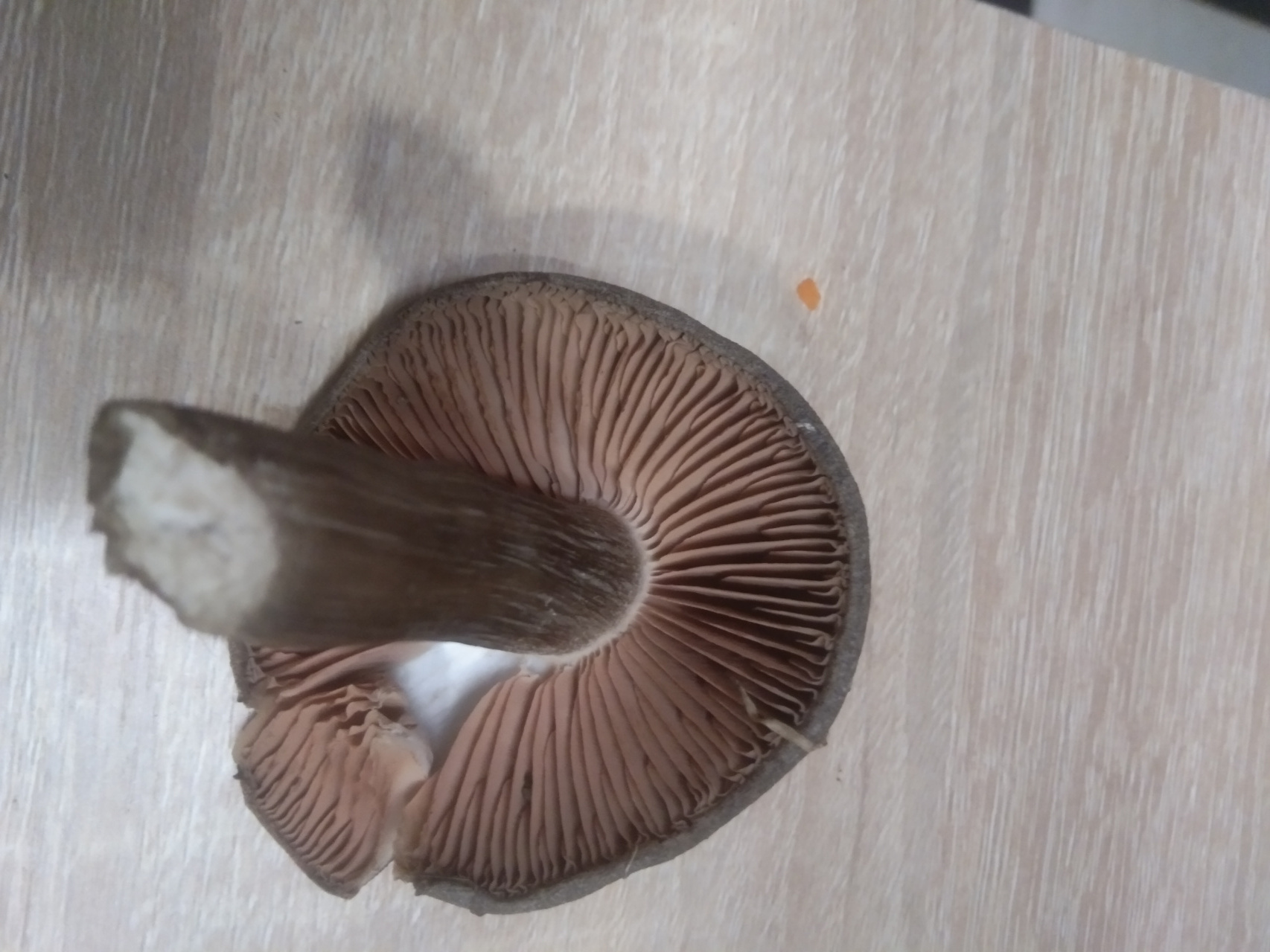Описание гриба: г.Ростов-на-Дону, без запаха, темнокоричневая шляпка, сухая, кучно, ,семья сразу 22шт.,молодой лиственны лесок. После среза , под шляпкой темнеет.