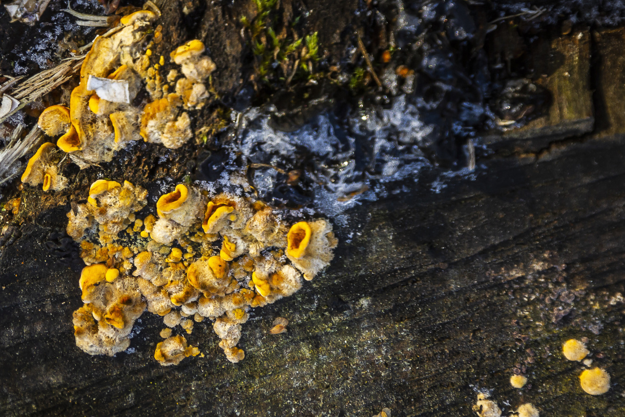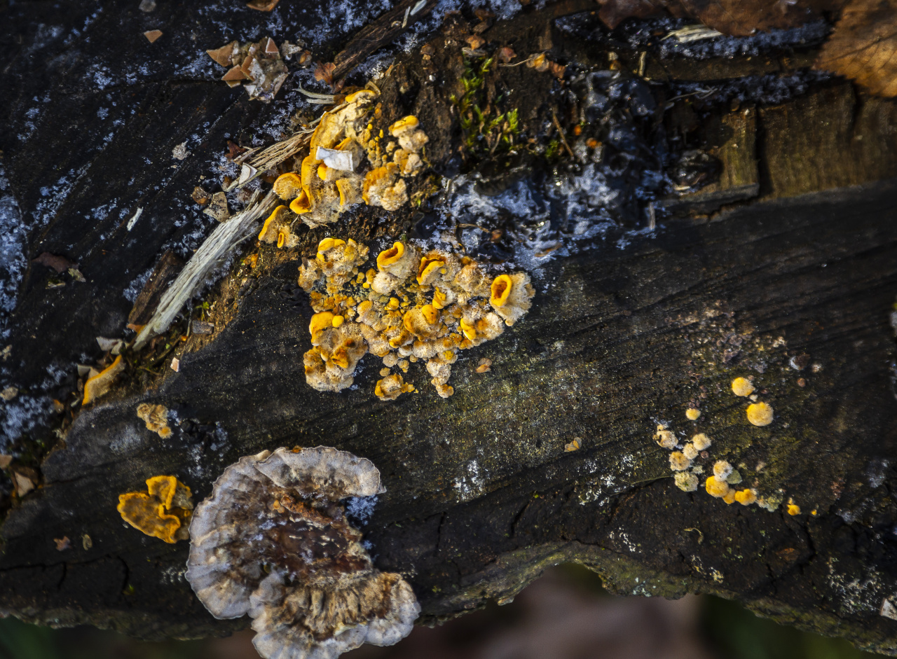 Описание гриба: Растет на поваленном дереве в Ботаническом саду им.Цицина, участок Дендрария. Запаха не почувствовала. На грибы не воздействовала физически. Тут же находился Траметес разноцветный, но с фотографии его обрезала