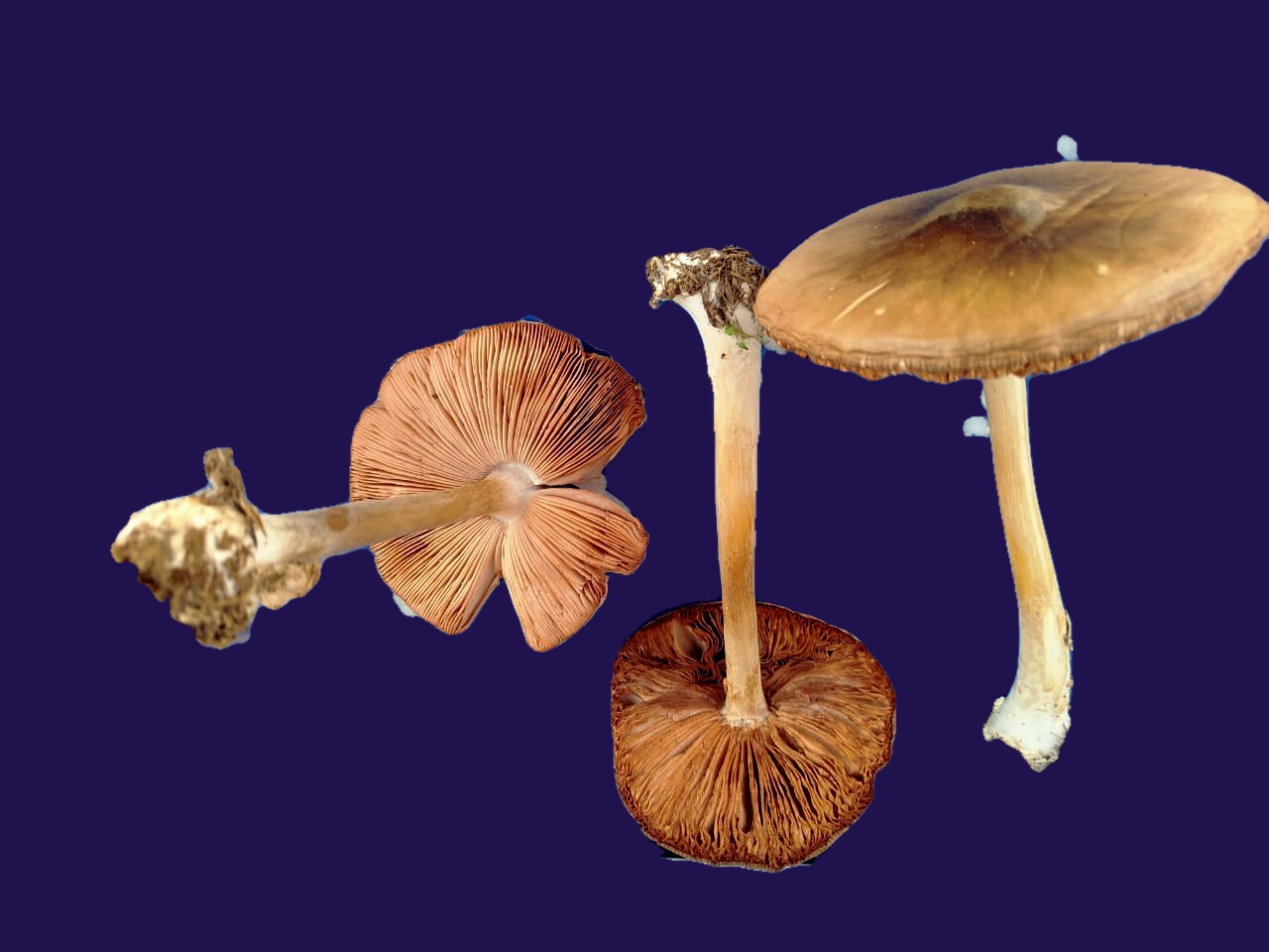 Вольва есть, кольца нет, побуревшие платинки не приросшие к ножке. И растут в поле.