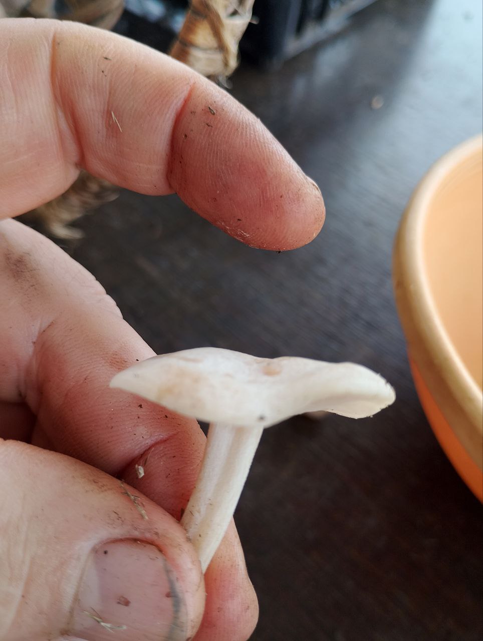 Описание гриба: Место сбора поляна с низкой травой на склоне лимана. Летом все высыхает, а осенью как пойдет дождик появляются маленькие. Большие не растут , Гриб маленький низкорастущий с тонкой ножкой и хрупкой шляпкой, которая немного изгибается, кремового цвета и шляпка и пластинки.