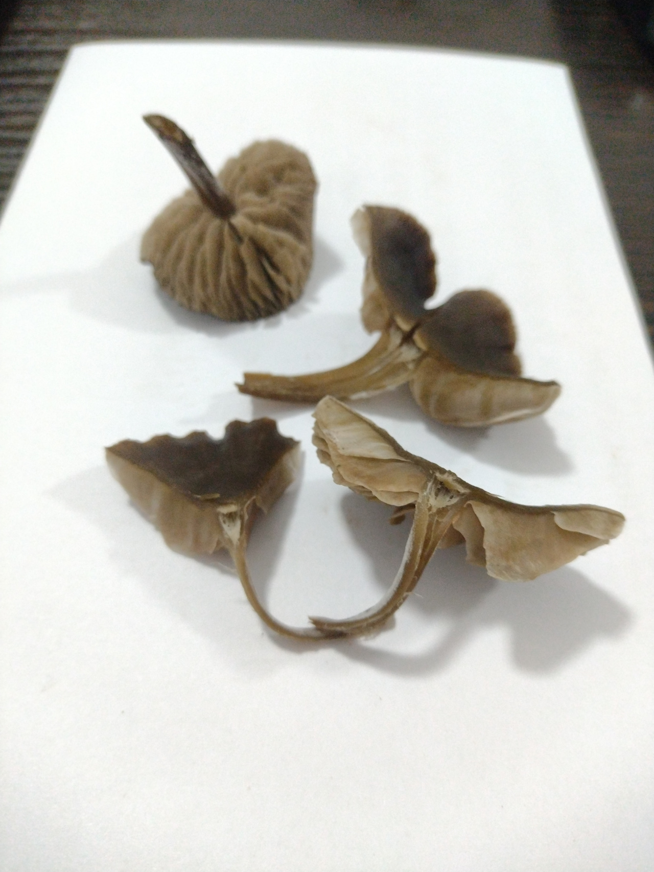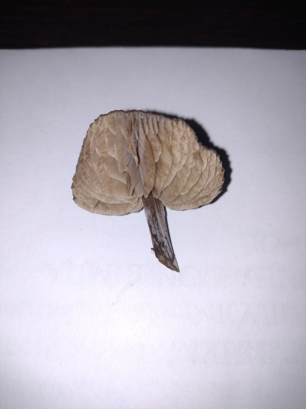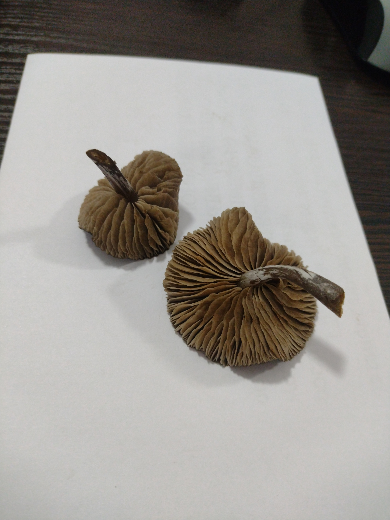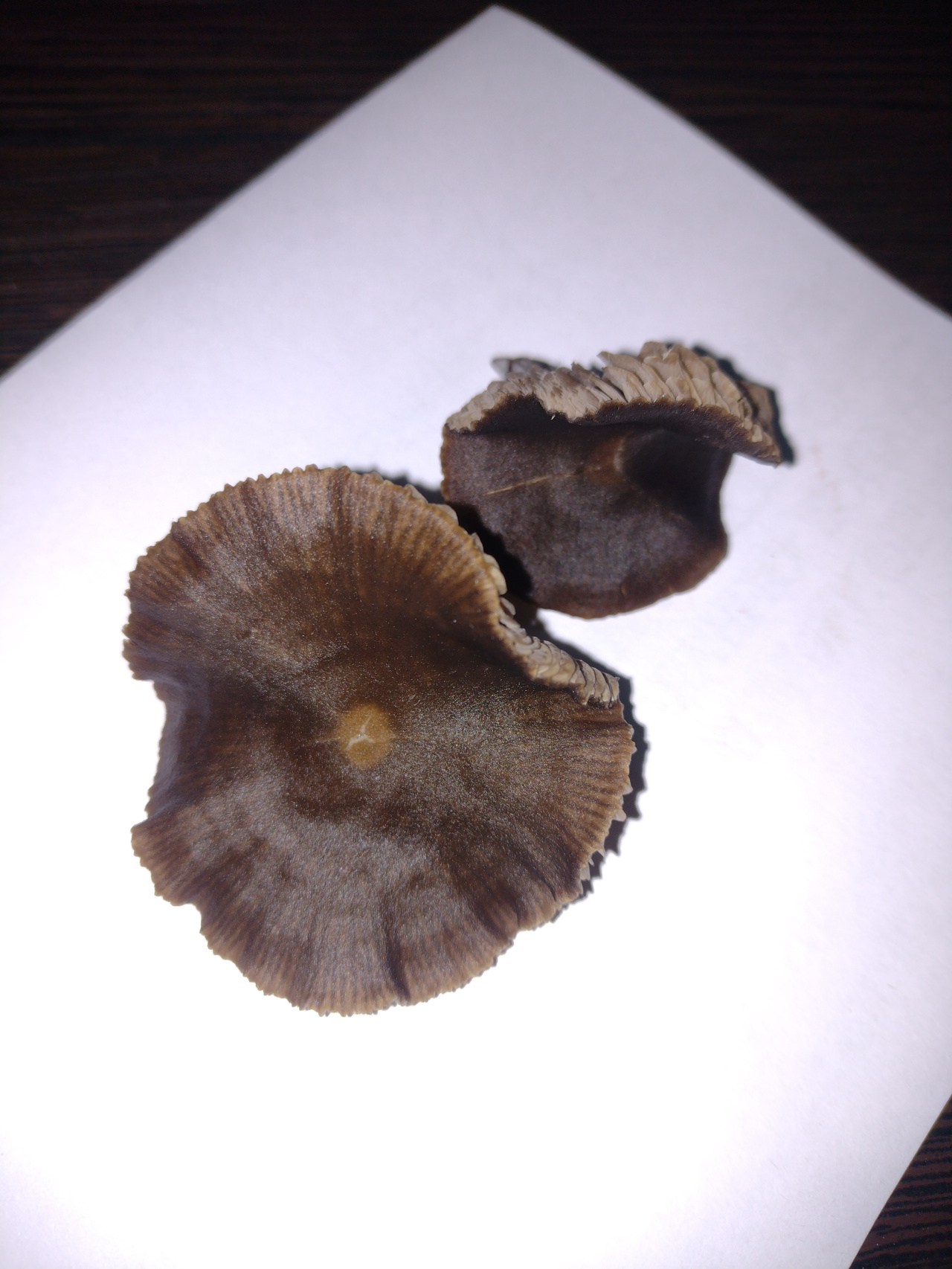 Описание гриба: Коричневая шляпка, тонкая, коричневая ножка трубчатая с белесым налетом, светло-коричневые пластины. Запах пряный, место забора степная зона, на мхе, в траве, в близи посадок.
