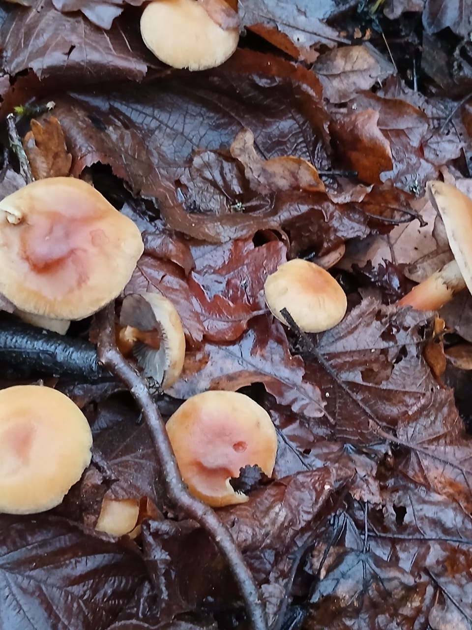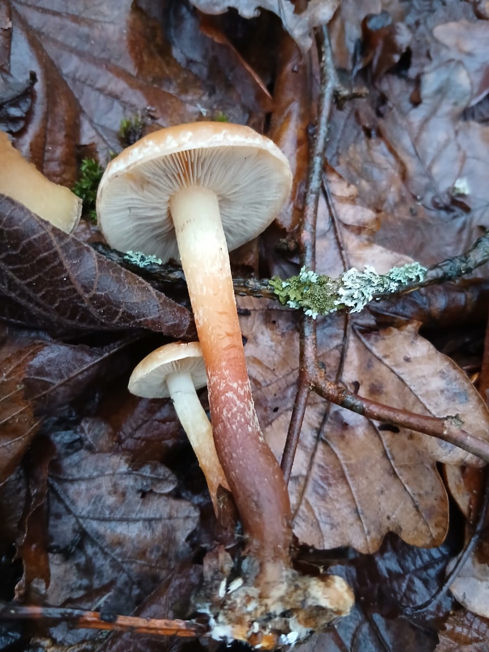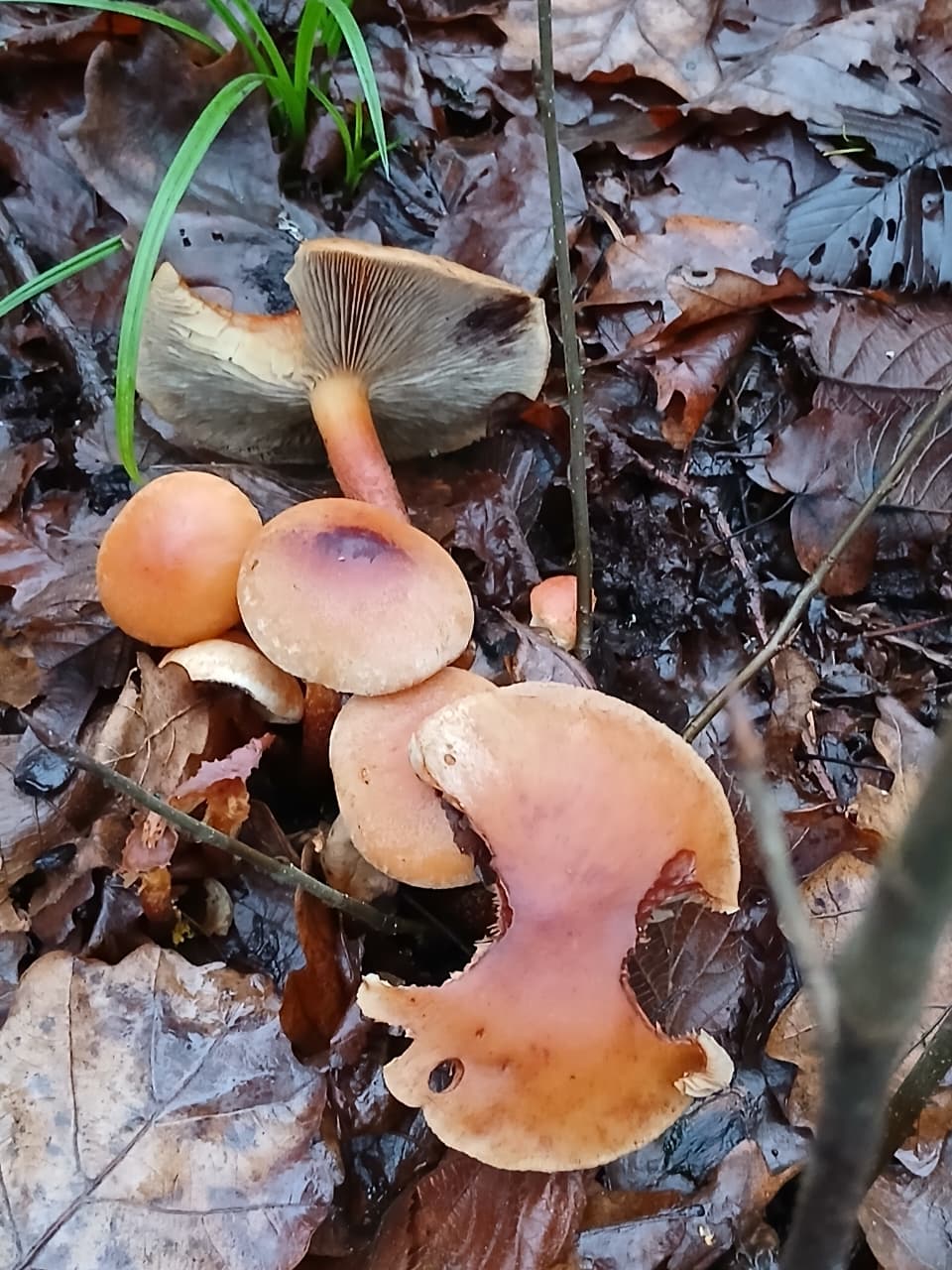 Что-то из гифолом, но сомнительно, чтобы кирпично-красные. Они так поштучно, но помногу редко растут.
