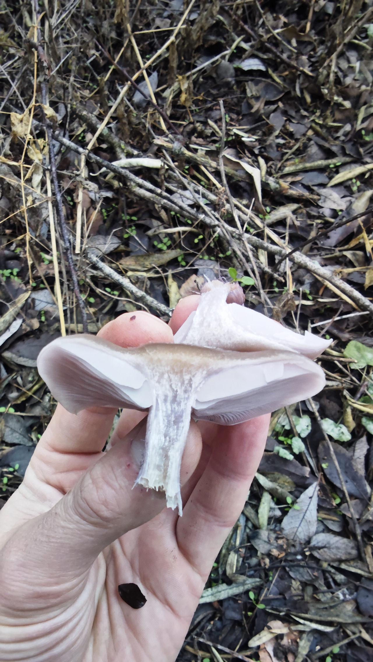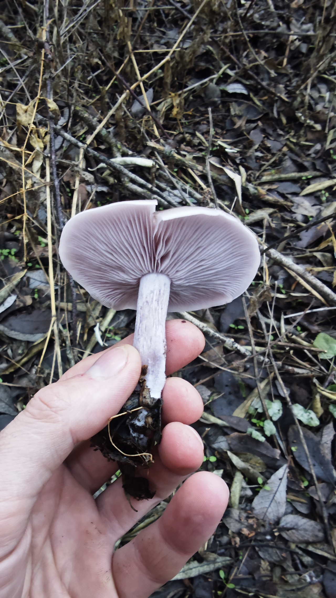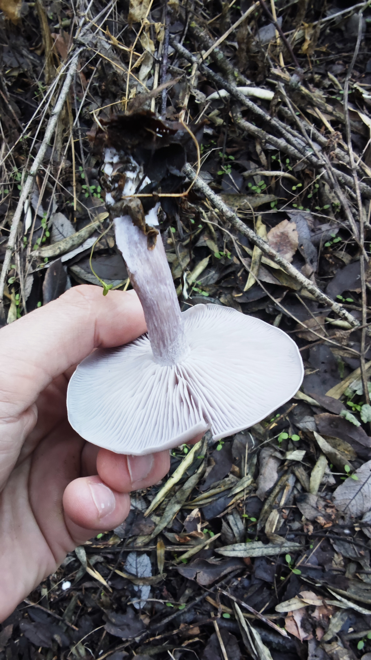 Описание гриба: Между осинами и кленами. Пластинки серо фиолетовые
