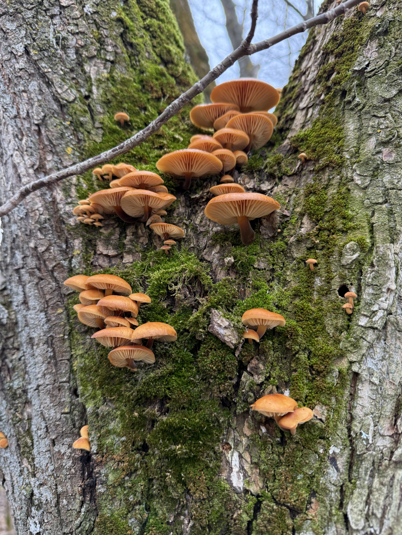 Описание гриба: Собирали 23.11.2025г. Лес смешанный. Растут на поваленных деревьях, и живых. Съедобные данные грибы?