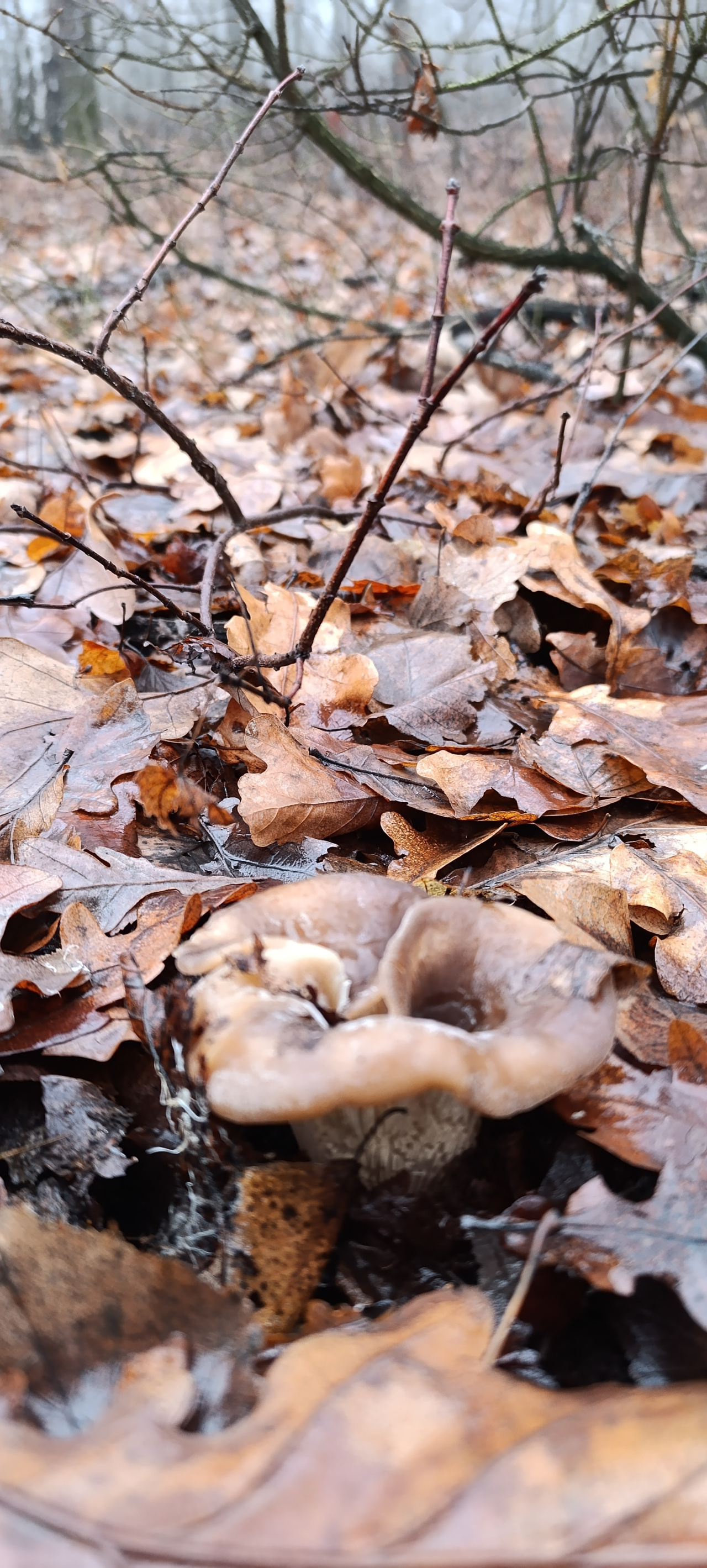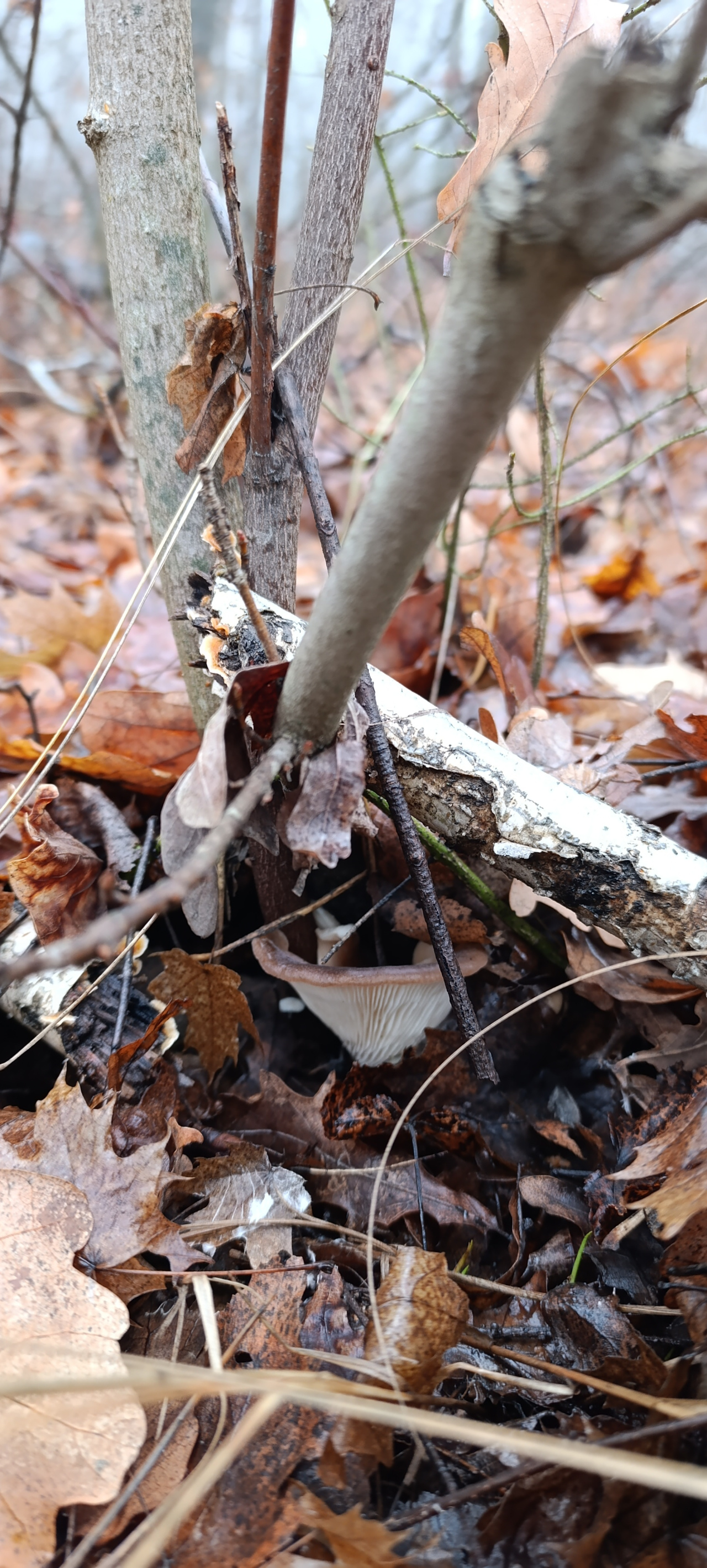 Описание гриба: Грибы росли в смешанном лесу, приимущественно дуб, осина, берёза. Чокруг трухлявого пня, с множеством трухлявых веток, на земле и под молодняком у корня.