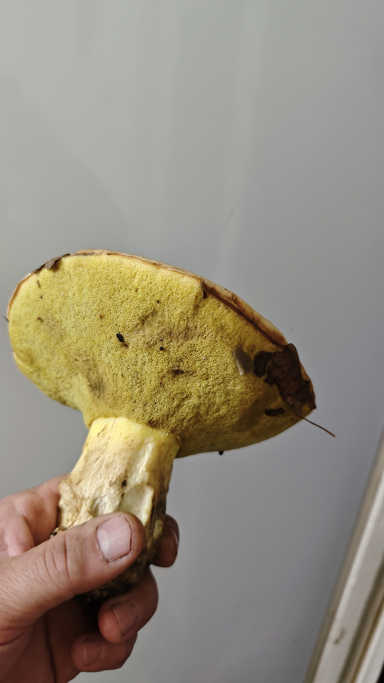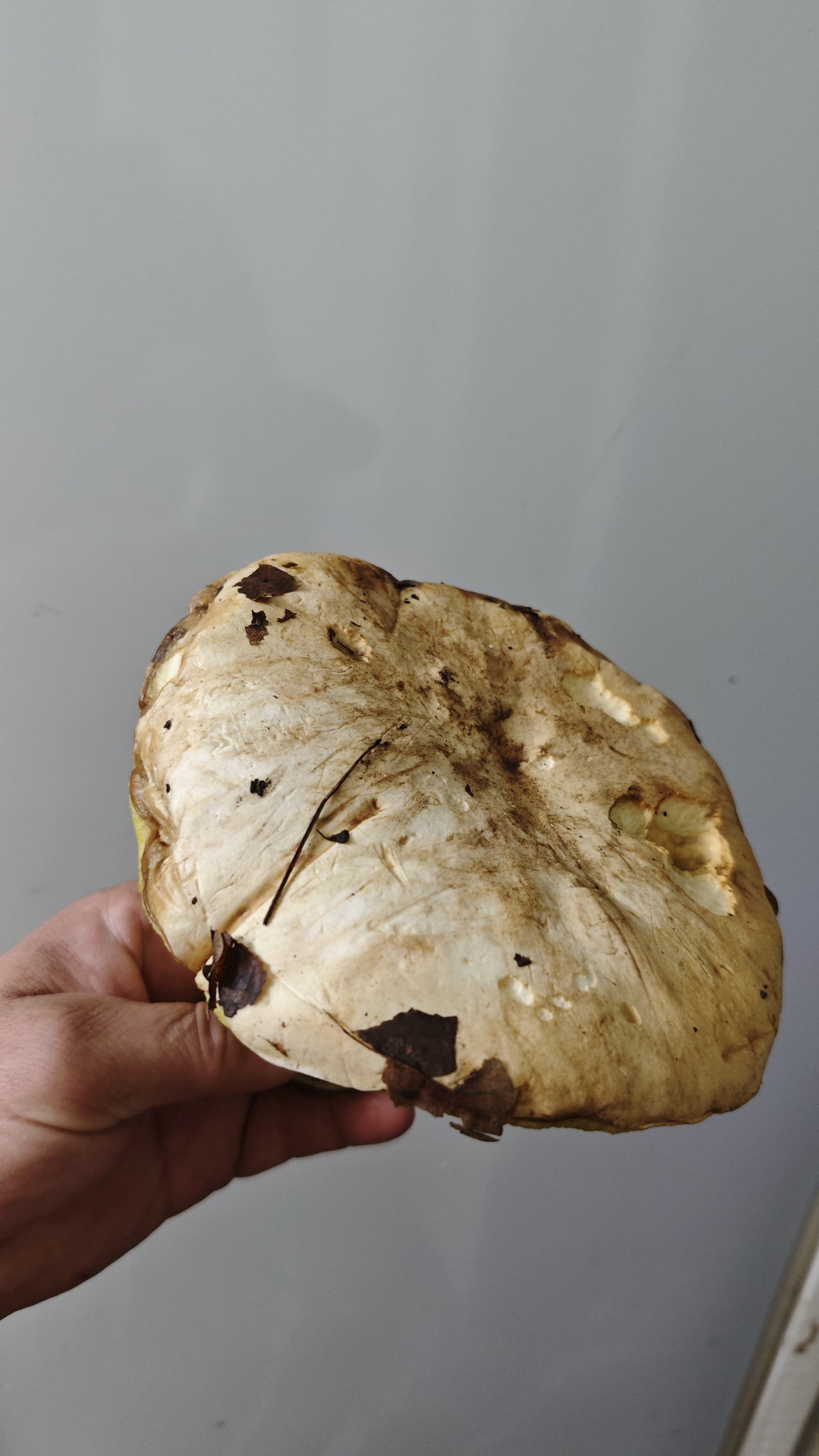 Описание гриба: Гриб жёлтого цвета со светло-коричневым верхом, трубчатый. Ножка толстая, полная. Запах слабый, приятно-грибной. На срезе жёлтый, цвет не меняет. Диаметр шляпки самого крупного гриба 22см.