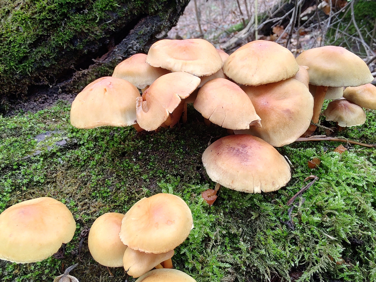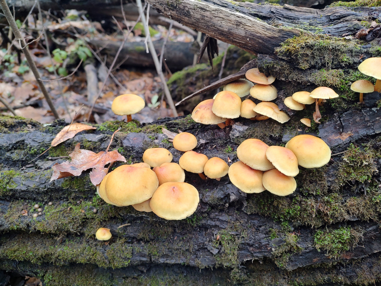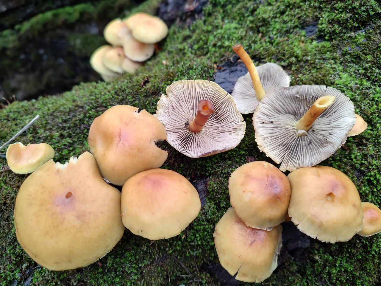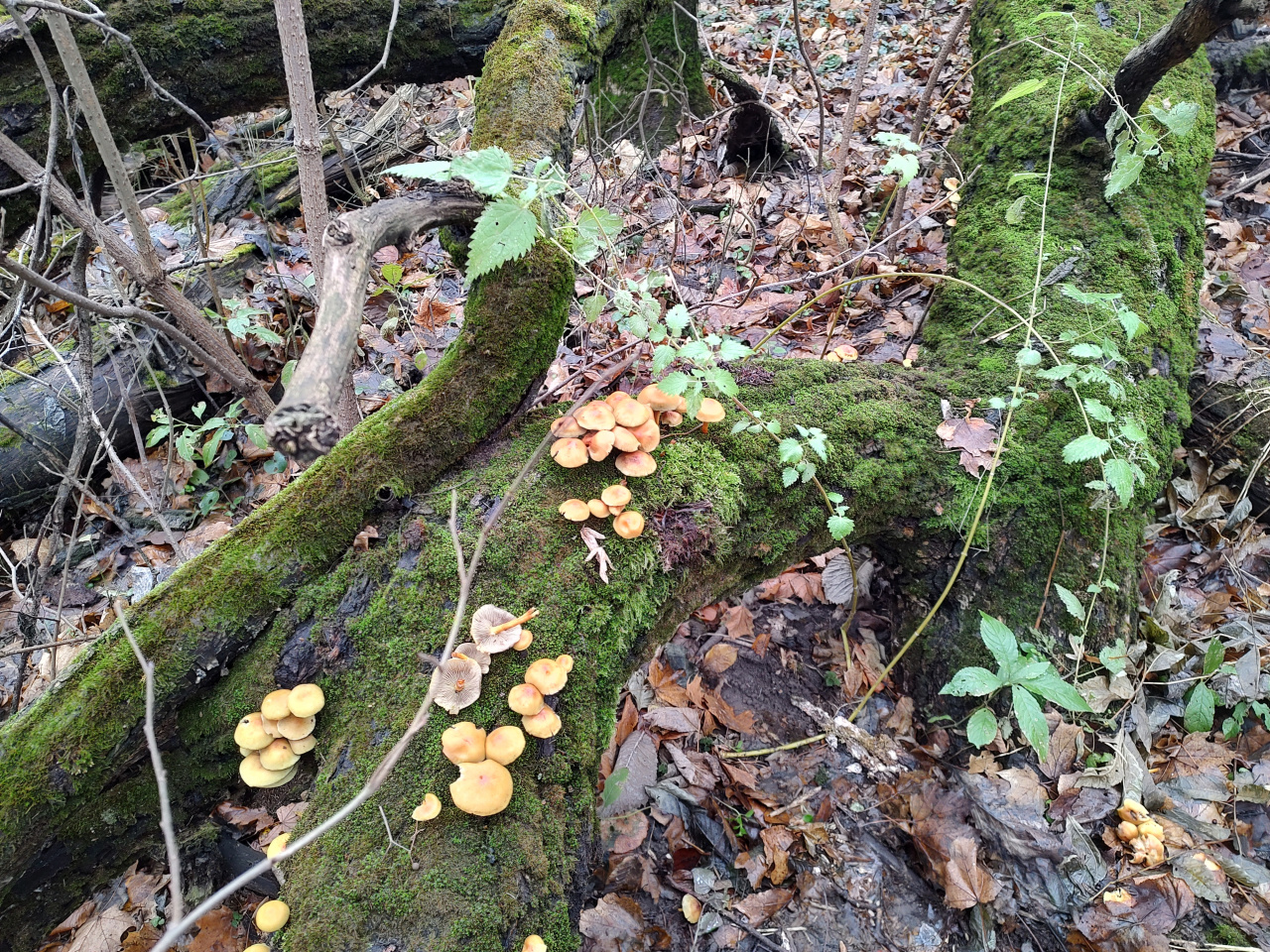 Описание гриба: Гриб похож на Опёнок серопластинчатый, но растёт на старом упавшем дереве лиственной породы, похоже на дуб. Смущает какой-то след от кольца на ножке. Гриб имеет не ярко выраженный грибной запах, на вкус в сыром виде горечи не имеет. 26.11.2025