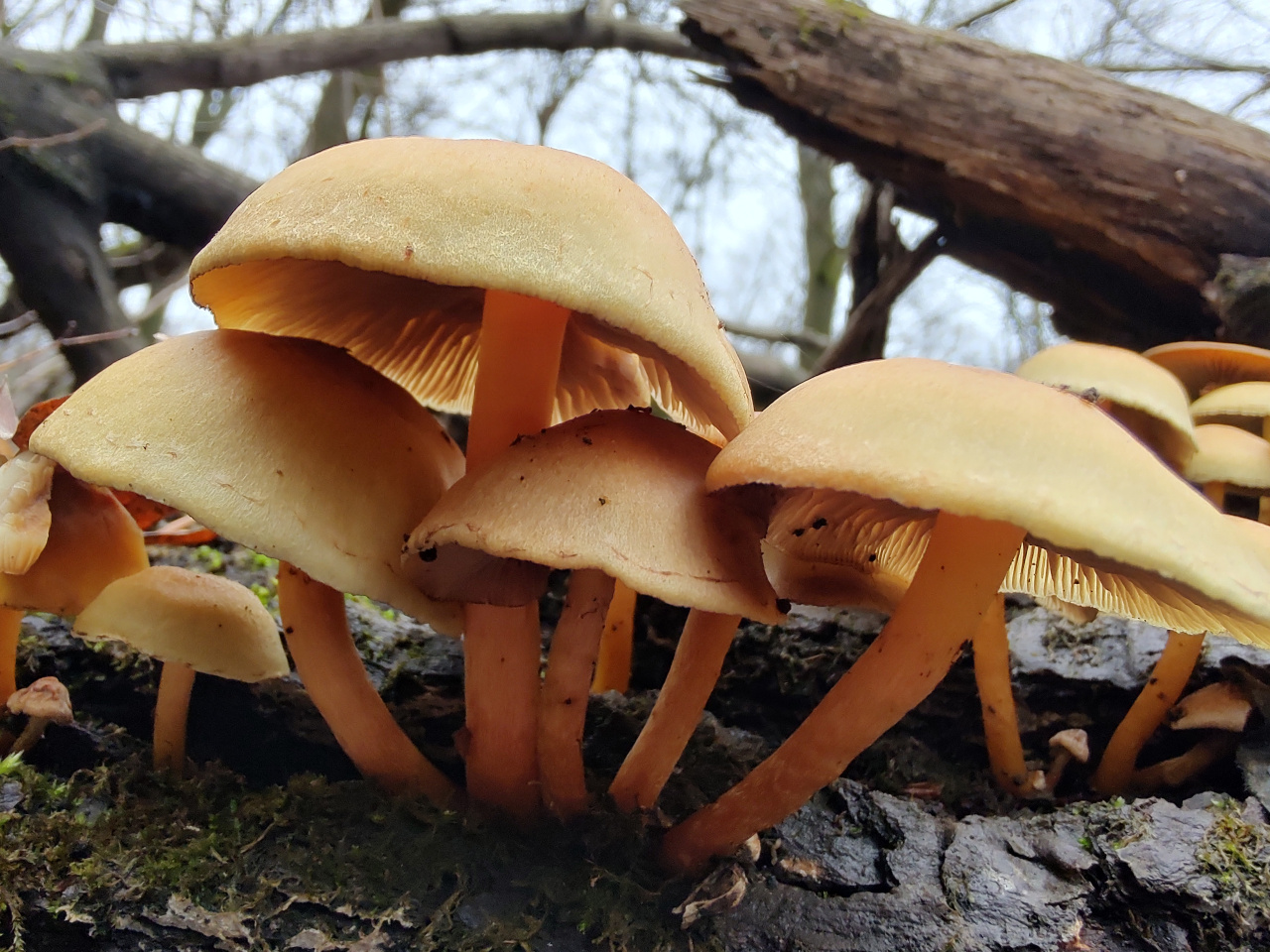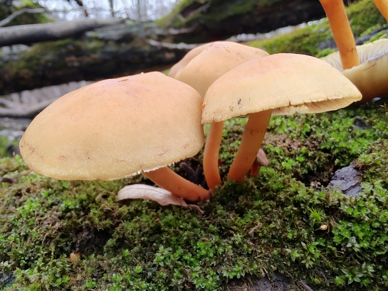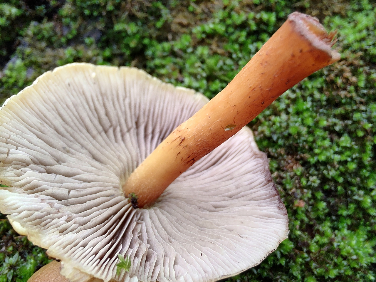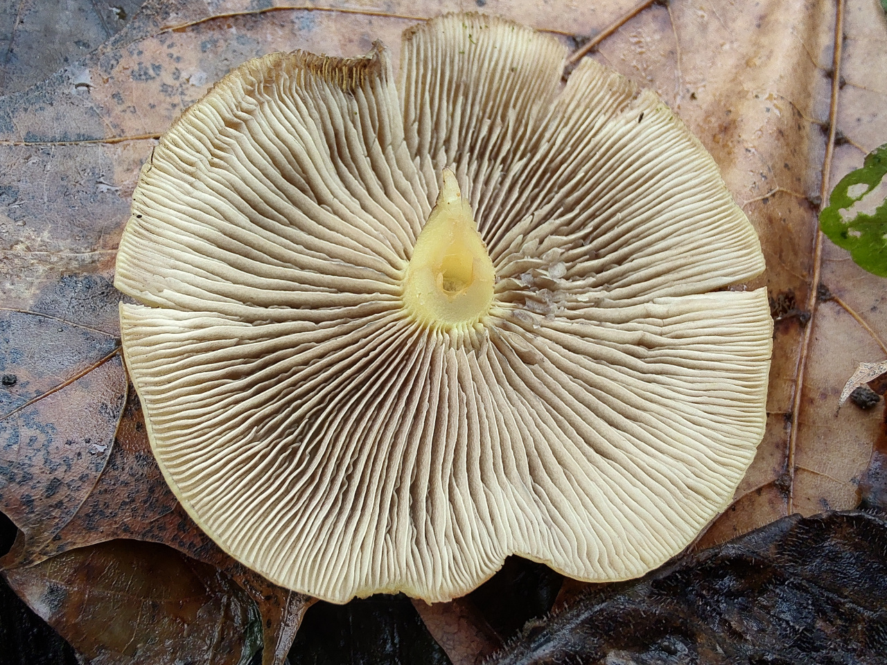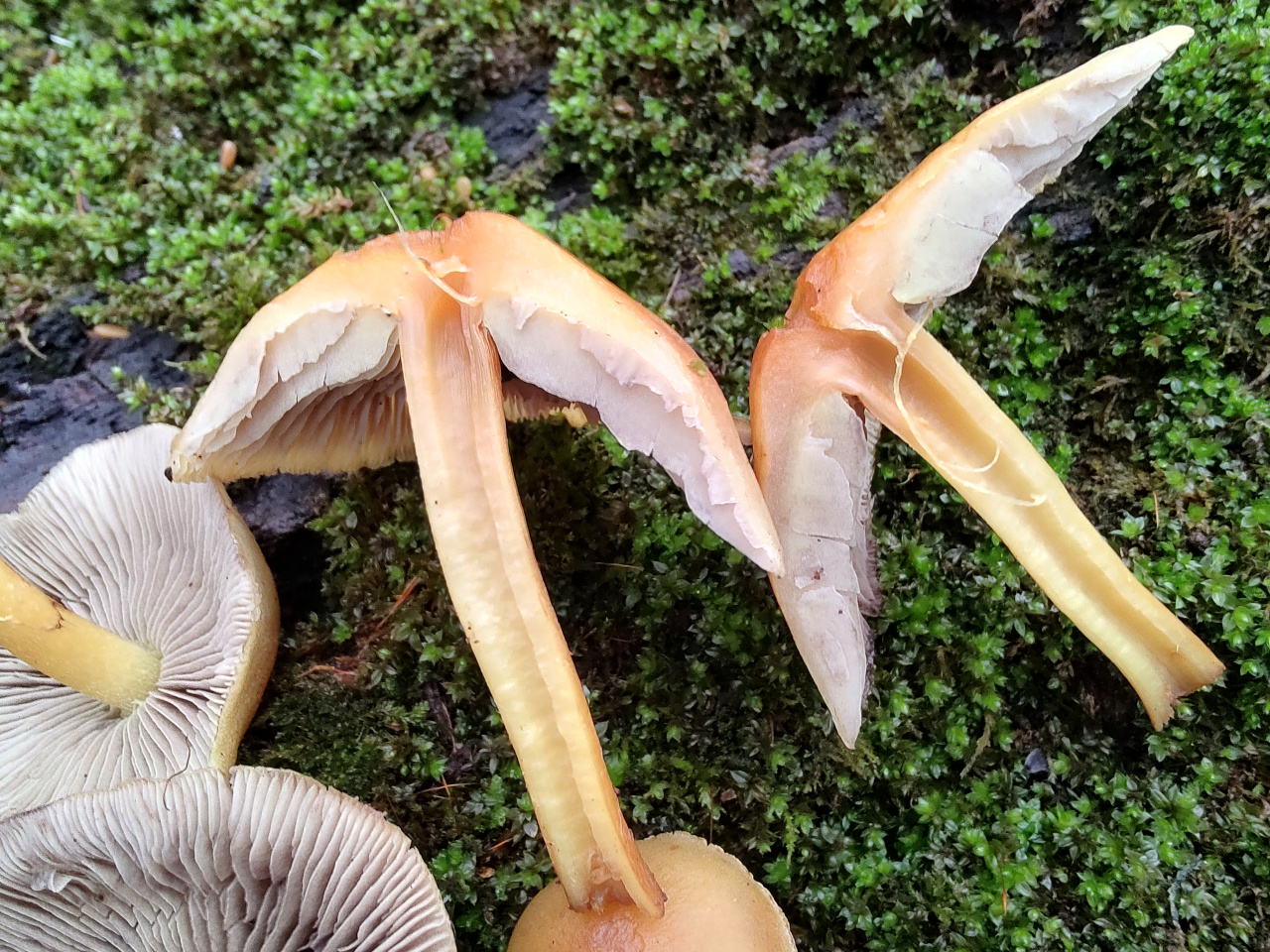 Описание гриба: Гриб похож на Опёнок серопластинчатый, но растёт на старом упавшем дереве лиственной породы, похоже на дуб. Смущает какой-то след от кольца на ножке. Гриб имеет не ярко выраженный грибной запах, на вкус в сыром виде горечи не имеет. 26.11.2025