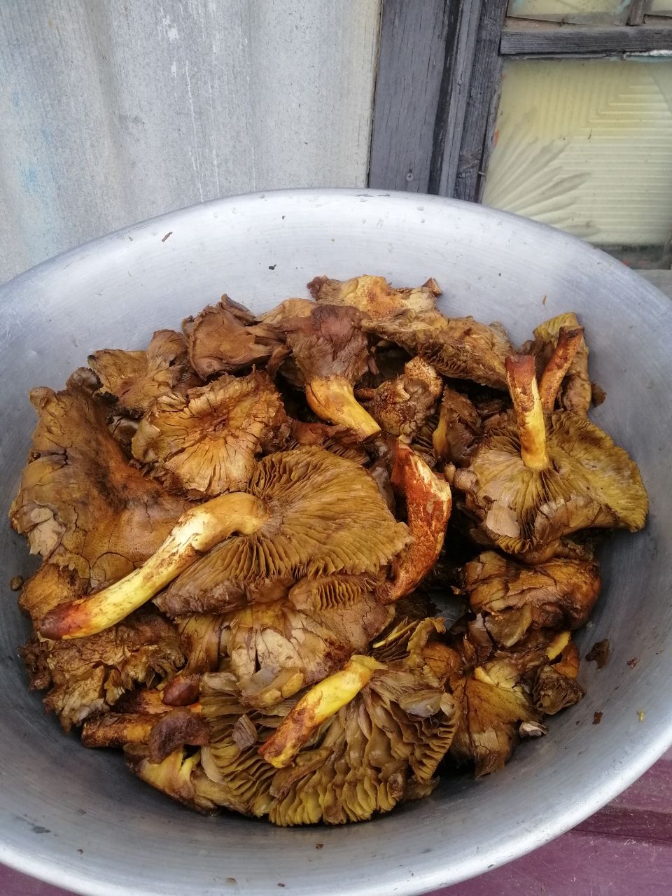 Грибы сильно не молодые и помятые. Но это однозначно не Зимний опёнок и не Свинушка тонкая.