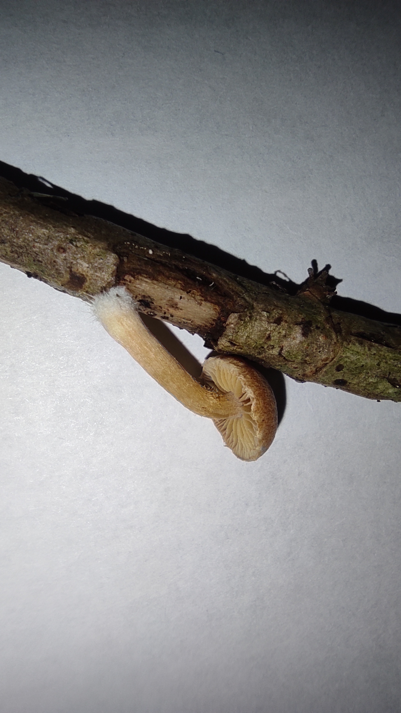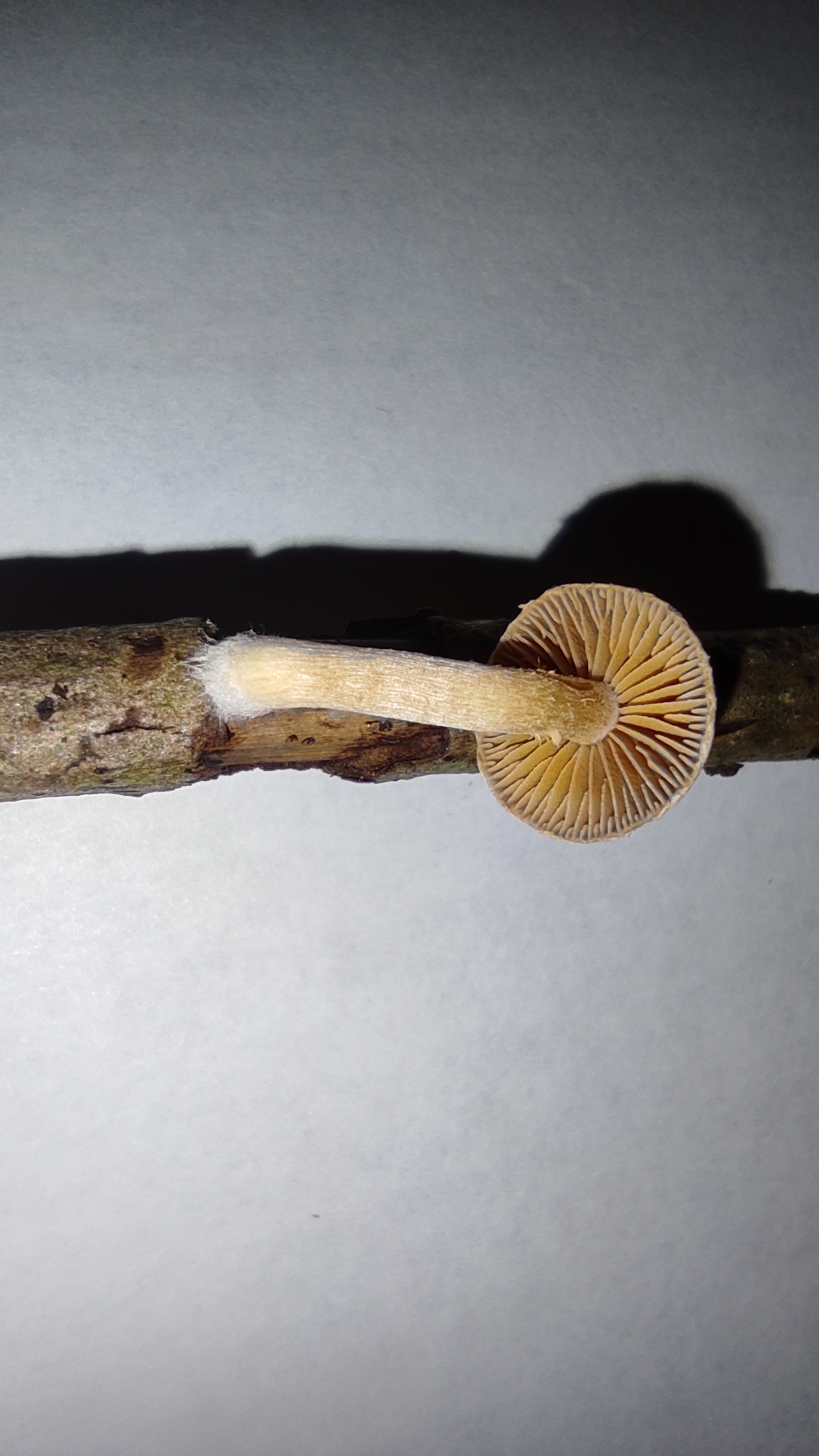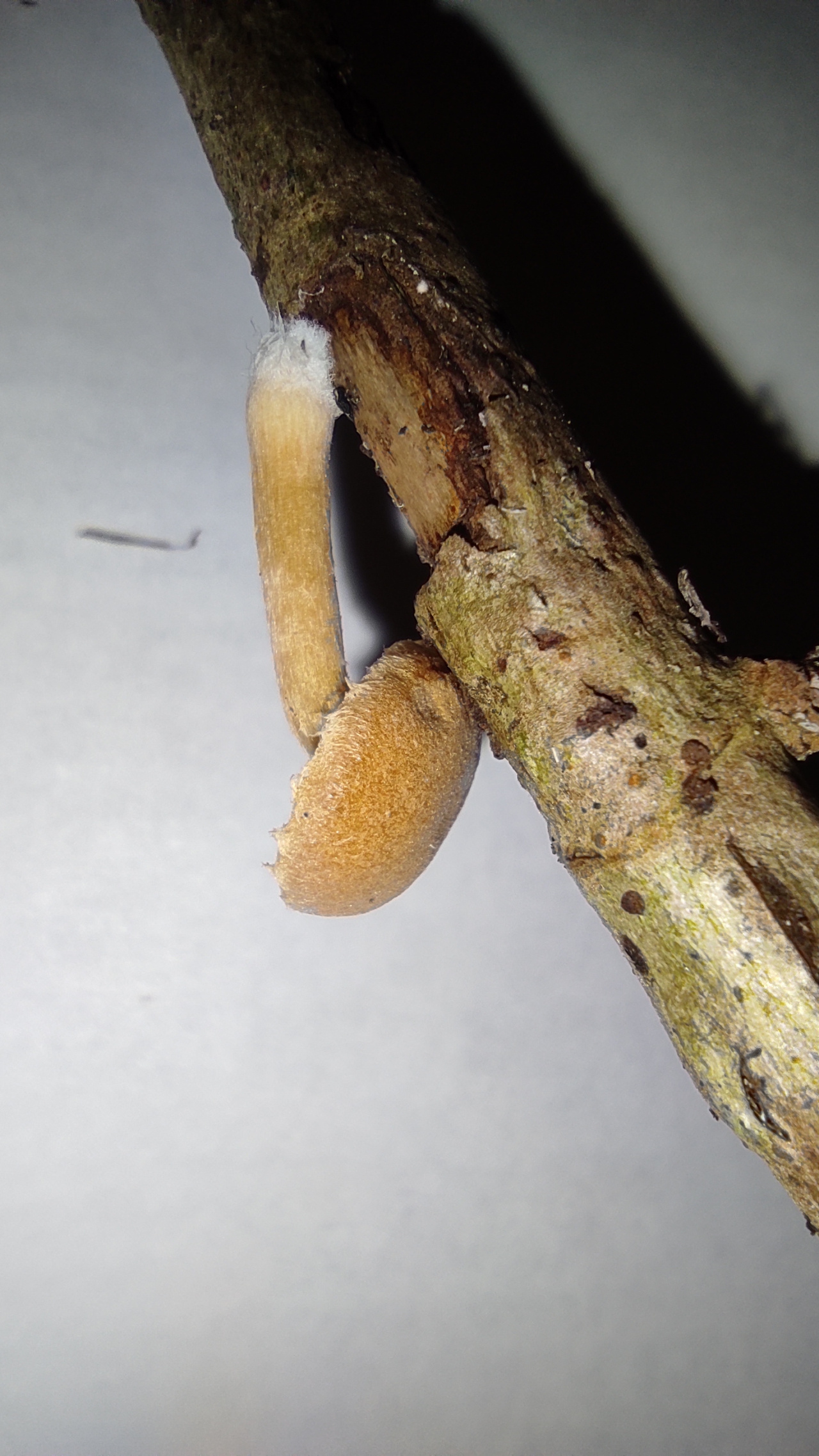 Да по описанию и фото похож. Также ничем не пахнет. И условия произрастания совпадают, сейчас очень сыро на участке. Только рос он не на иве, хотя ее предостаточно, а в сухих кустах калины.Из-за маленкого размера пришлось снимать макросъёмкой со вспышкой, поэтому наверное цветопередача не очень.