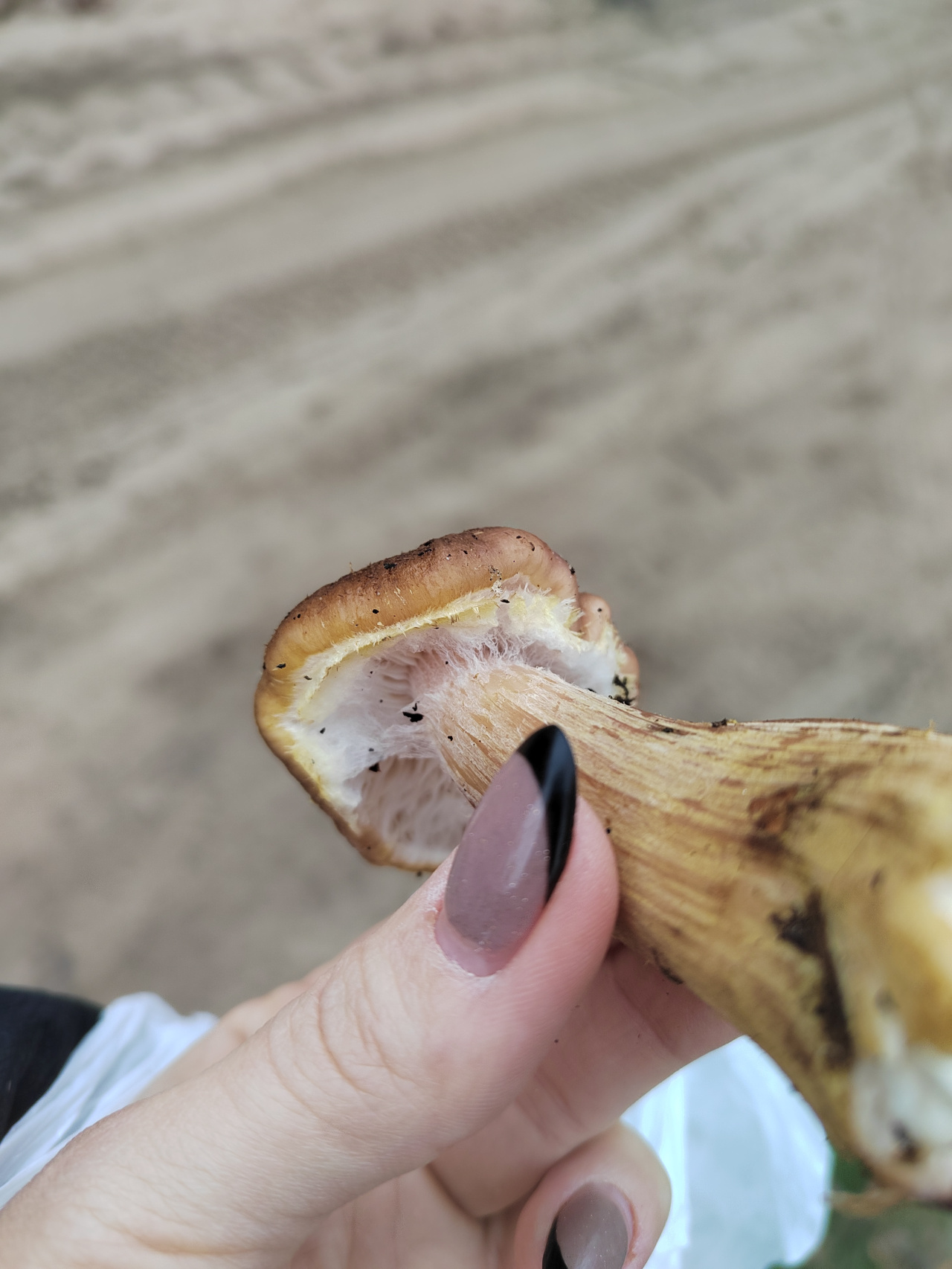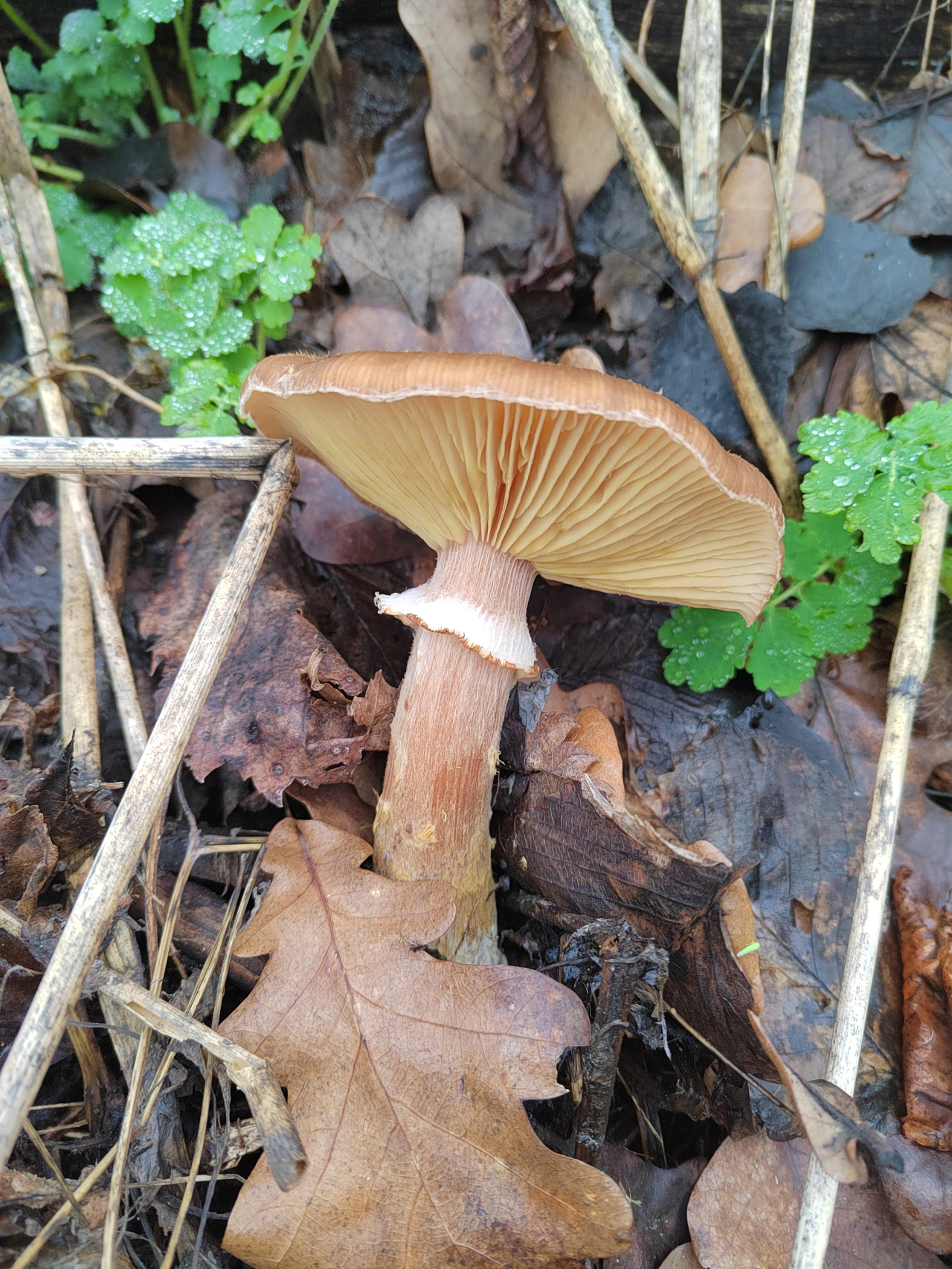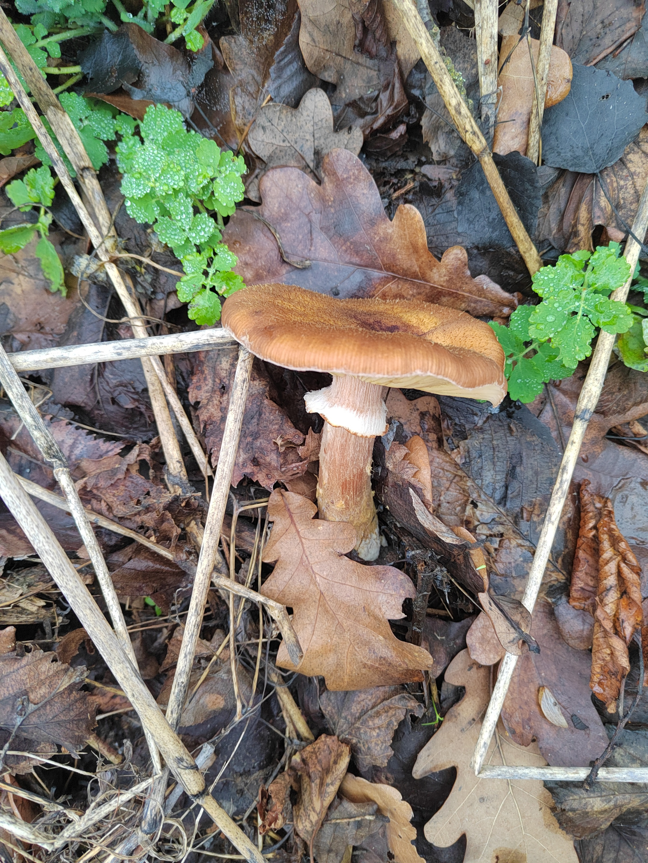Описание гриба: Нашла пару грибов в осиново дубовом лесу,возле болота. Ножка хрупкая, волокна плотные. Размер шляпки 8-10 см. Дата 29.11 юфо.