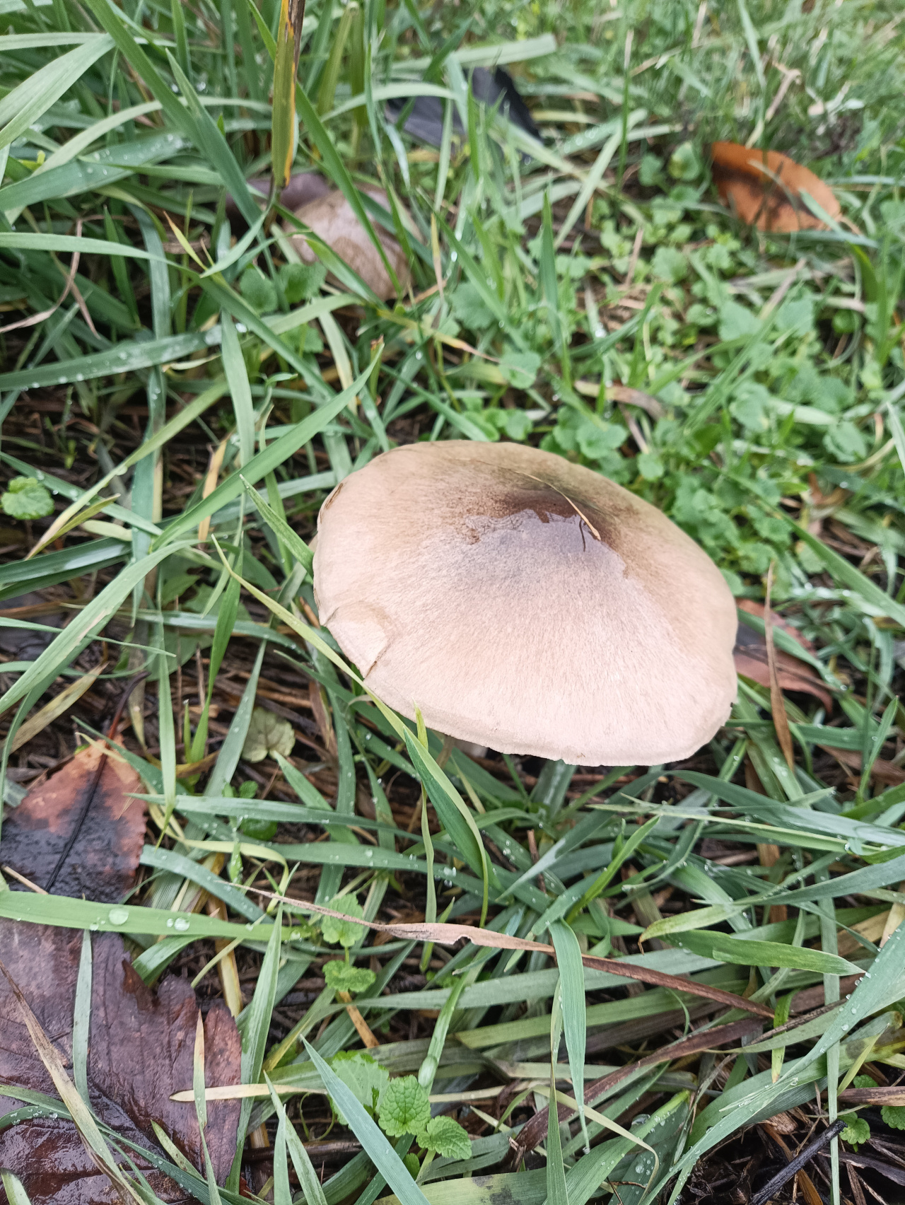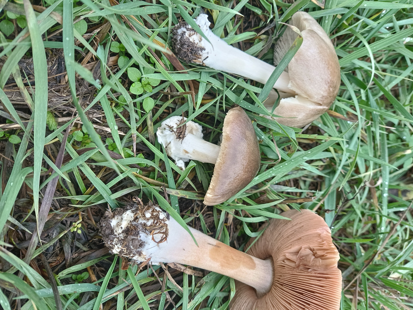 Описание гриба: Шляпка коричневая, скользкая. Ножка к земле утолщается, под шляпкой молодого гриба белые полосочки (где споры).