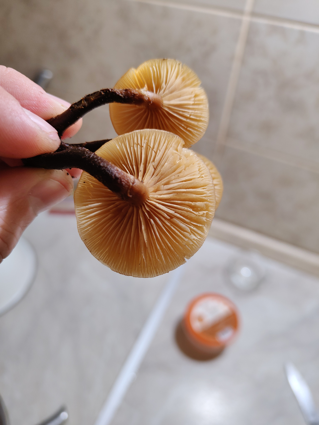 м.б. какой-то Гимнопус или Heimiomyces tenuipes, к примеру