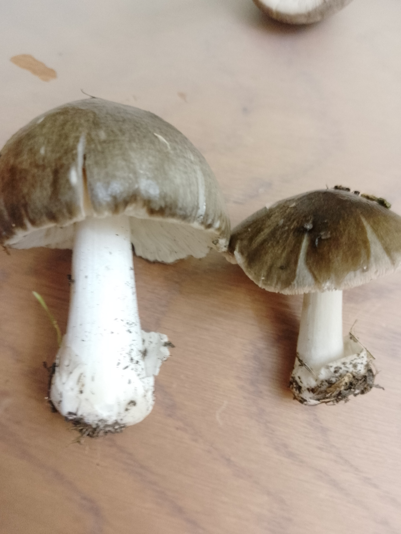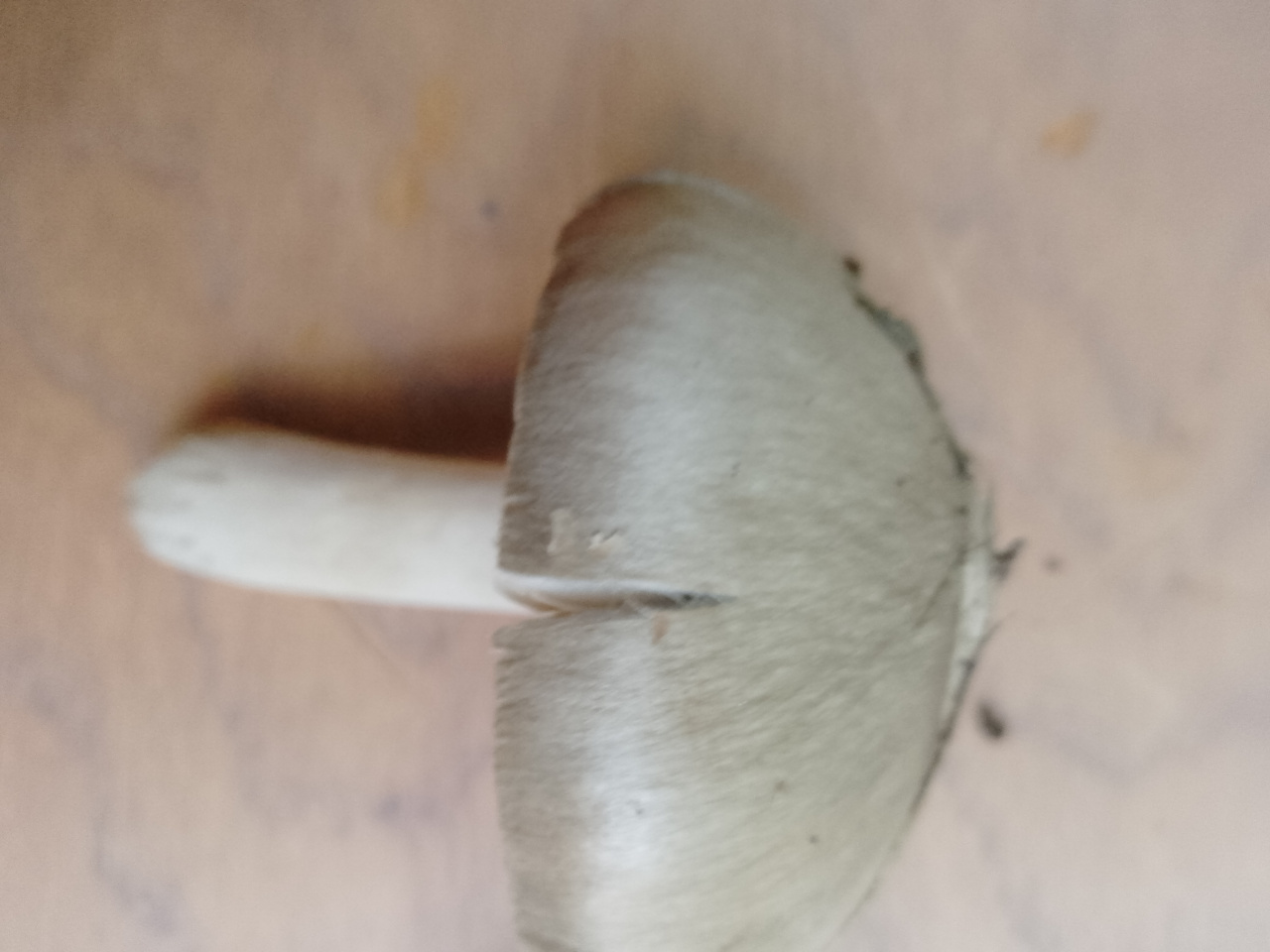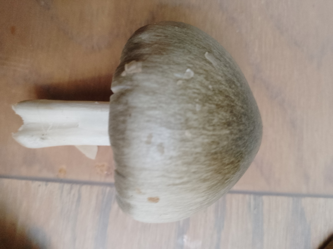 Описание гриба: Шляпка до12 см, у молодых серая, колпаком, у старых коричнево серая, распростеотая с бугорков по центру , пластины сначала белые, затем розоватые, потом охраны. Ножка белая без полости. У основания остатки общего покрывала. На лугу, среди травы. Запах не выразительный, вкус тоже. Цвет не меняет. Собраны 6 декабря, +6С. Заморозков ещё не было.