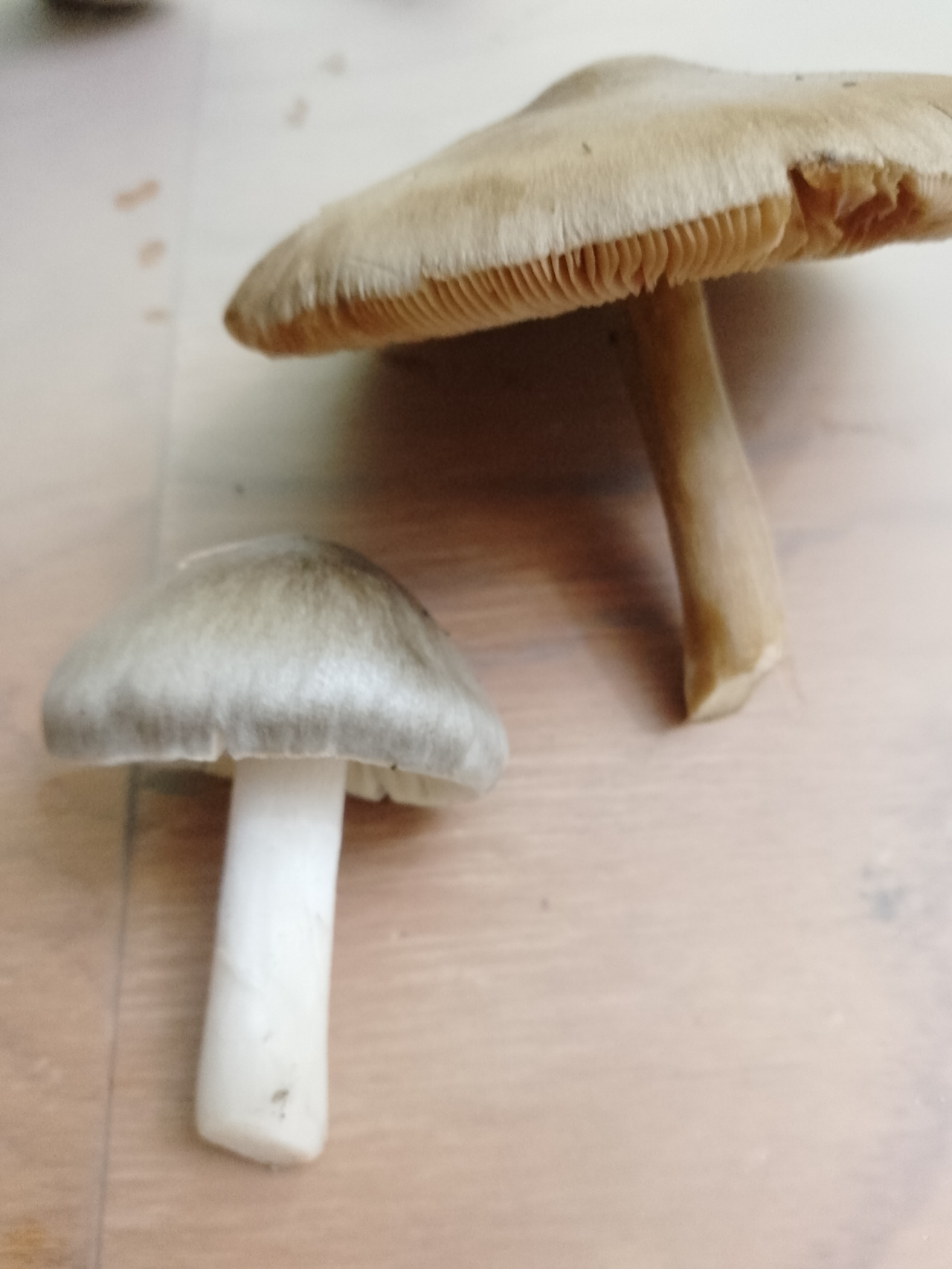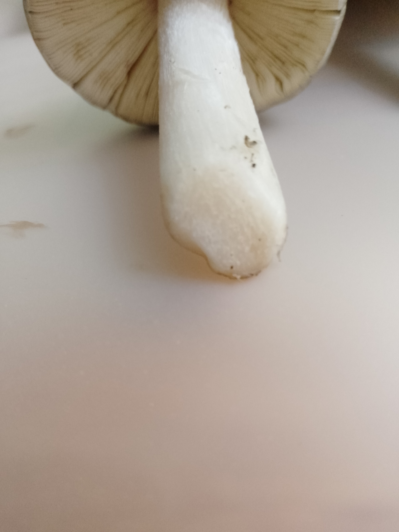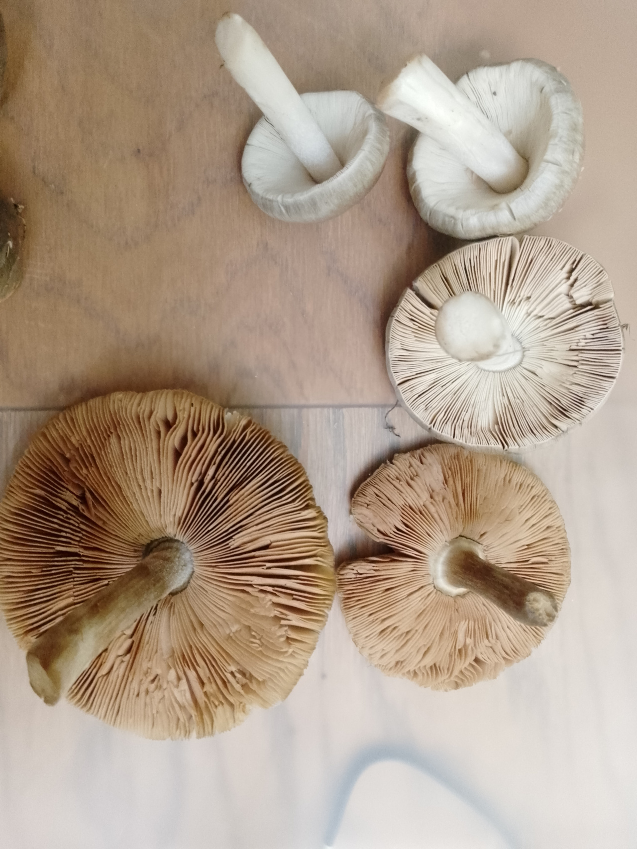 Описание гриба: Шляпка до12 см, у молодых серая, колпаком, у старых коричнево серая, распростеотая с бугорков по центру , пластины сначала белые, затем розоватые, потом охраны. Ножка белая без полости. У основания остатки общего покрывала. На лугу, среди травы. Запах не выразительный, вкус тоже. Цвет не меняет. Собраны 6 декабря, +6С. Заморозков ещё не было.