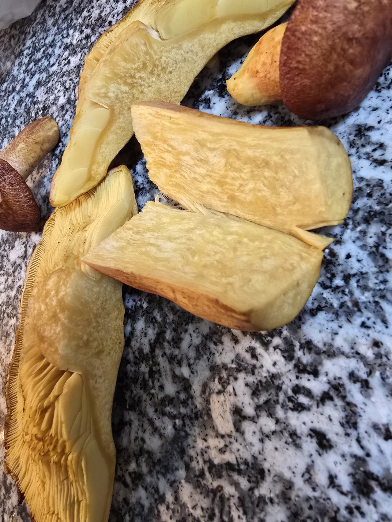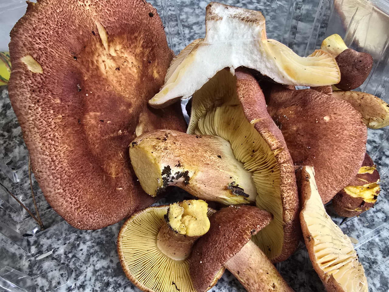 Первый раз собираю грибы в Португалии. Была версия что это Рыжовка рядовая но ножка у взрослого гриба не полая, это и насторожило. Не горчит. Запах нейтральный. Попался аналогичный червивый гриб, поэтому и рискнула взять. Растет в сосновом смешанном лесу. Не на пнях.