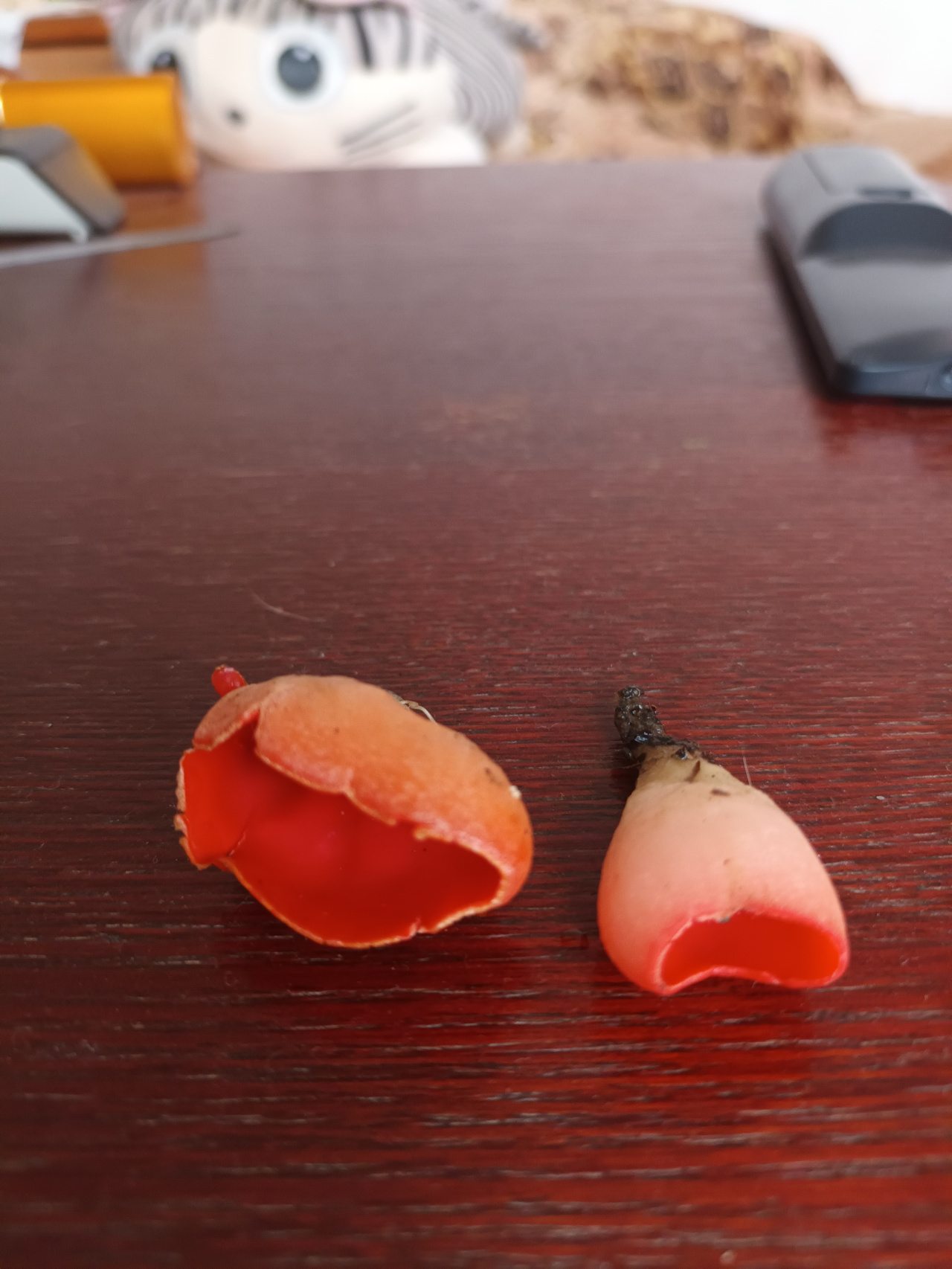 Описание гриба: Красная рюмочка. Сбор в лиственном лесу, без запаха.