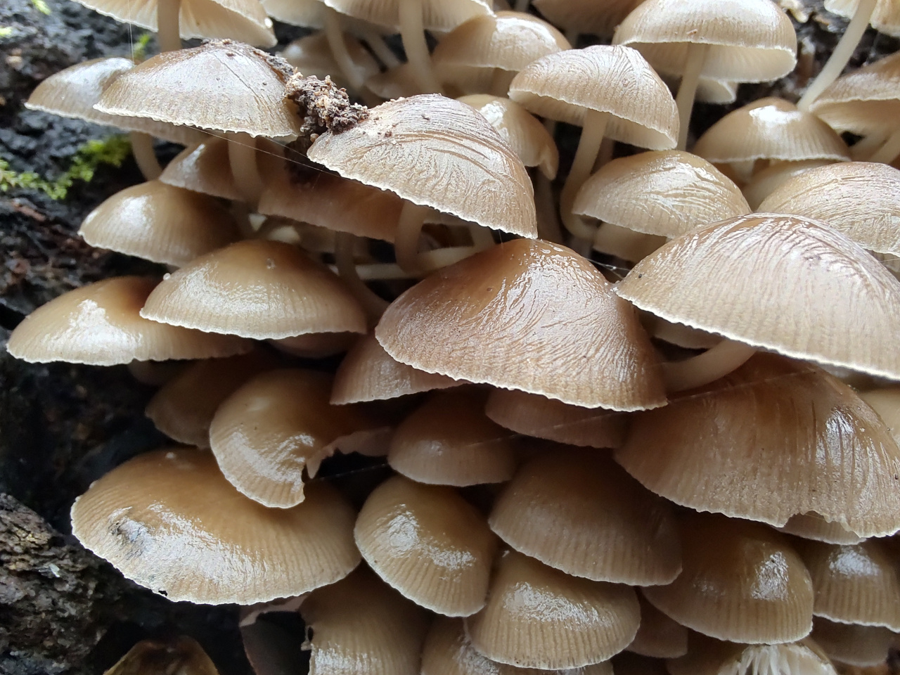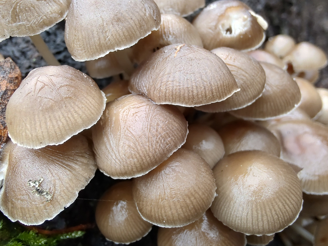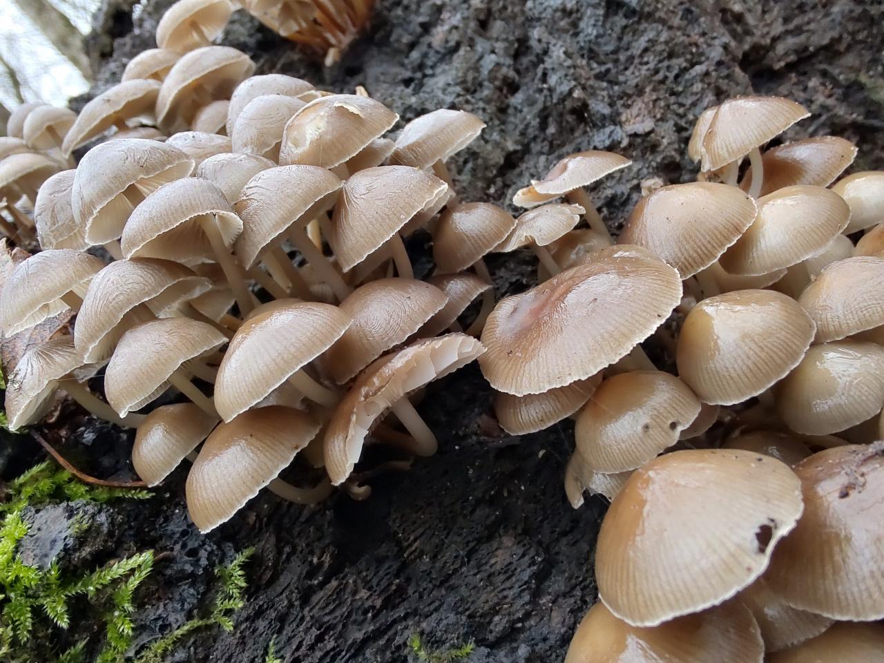 Описание гриба: Грибы растут на бревне гнилого лиственного дерева. Грибочки маленькие растут группами. 20.12.2025
