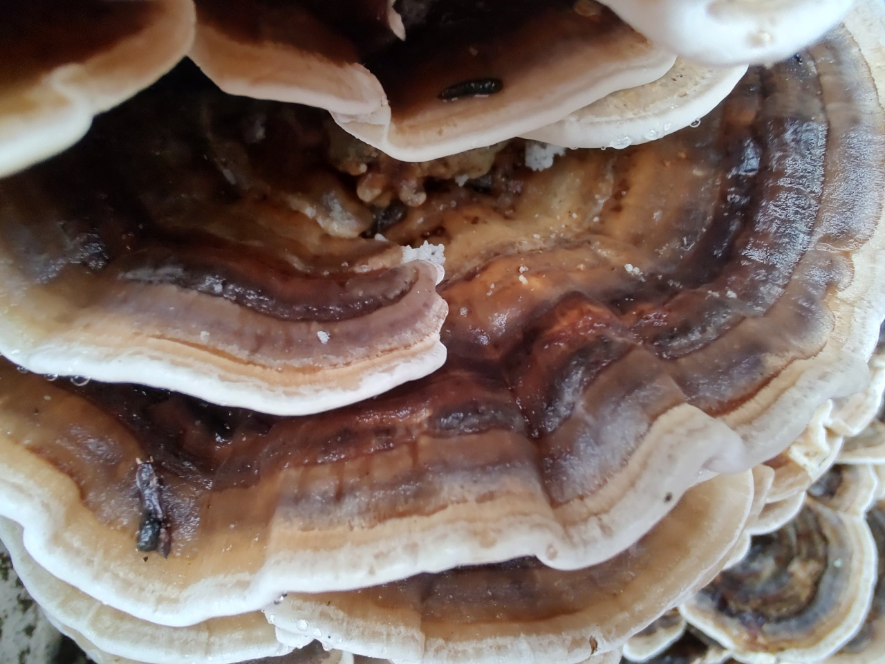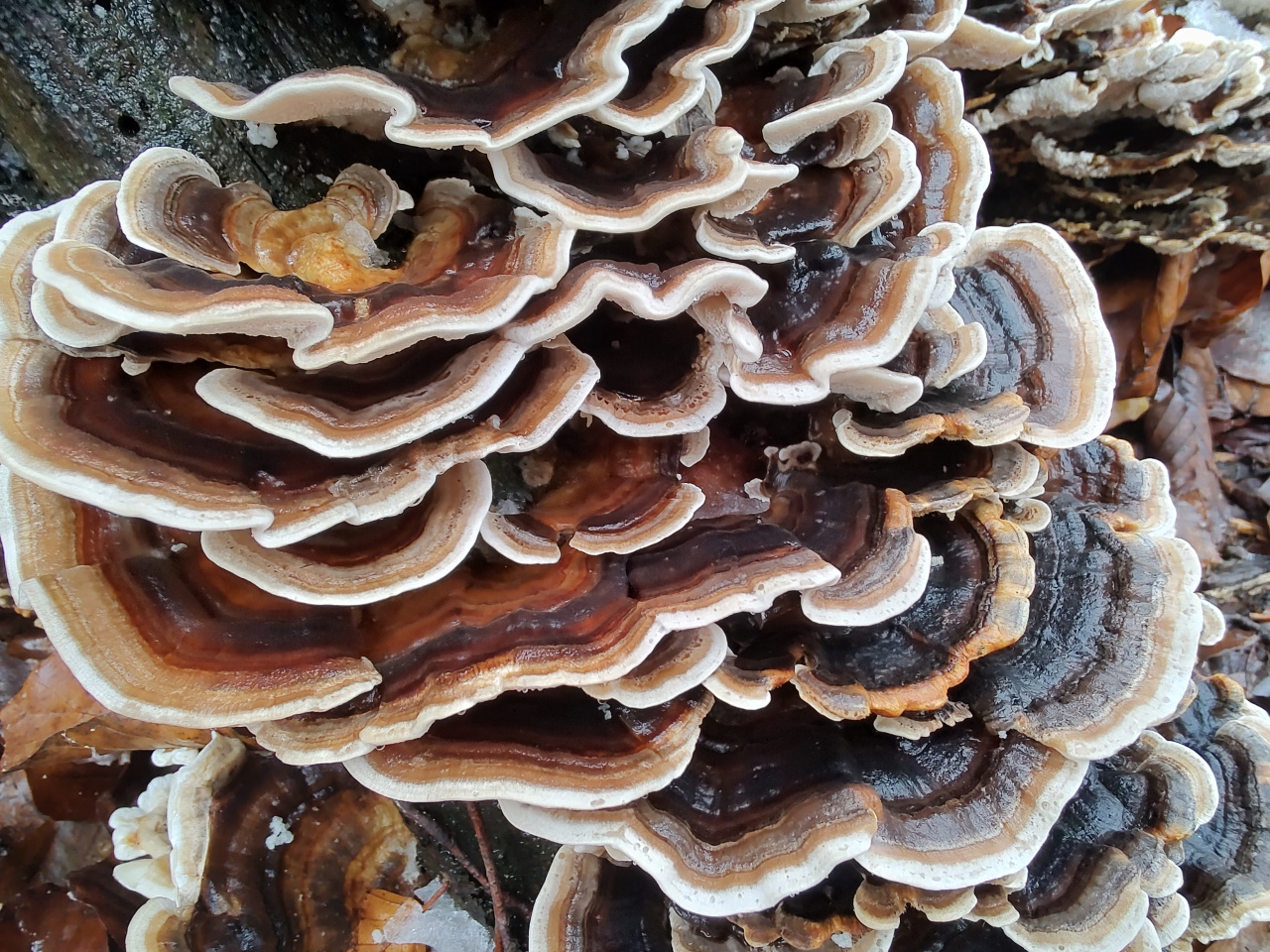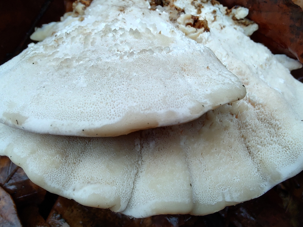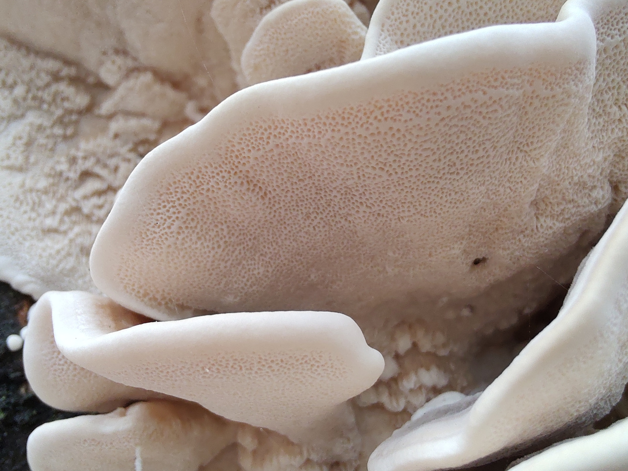Описание гриба: Гриб растёт на стволе лиственного дерева большими сростками начиная с основания дерева и на несколько метров вверх по стволу. Грибы слегка мягковатые. 24.12.2025