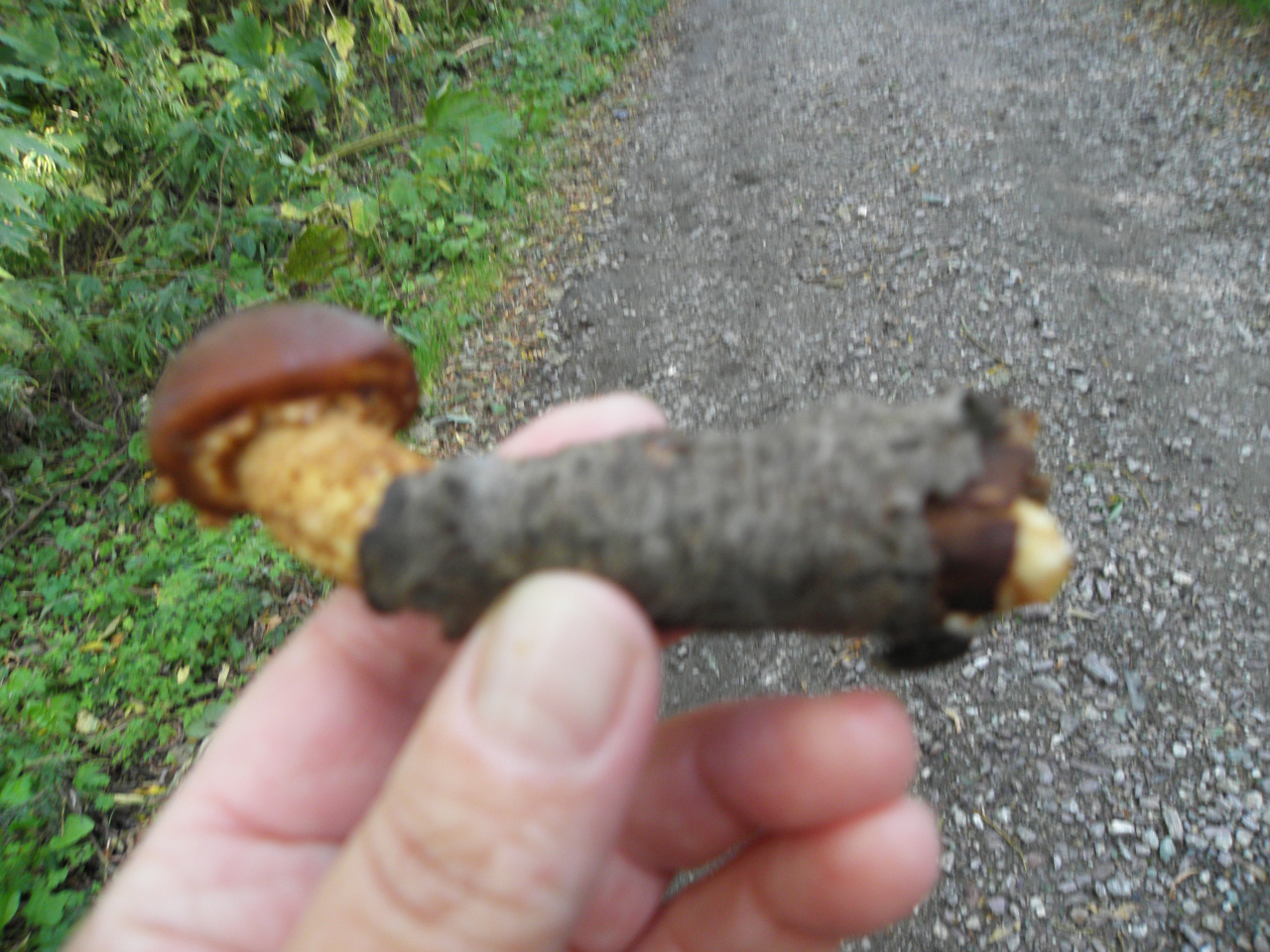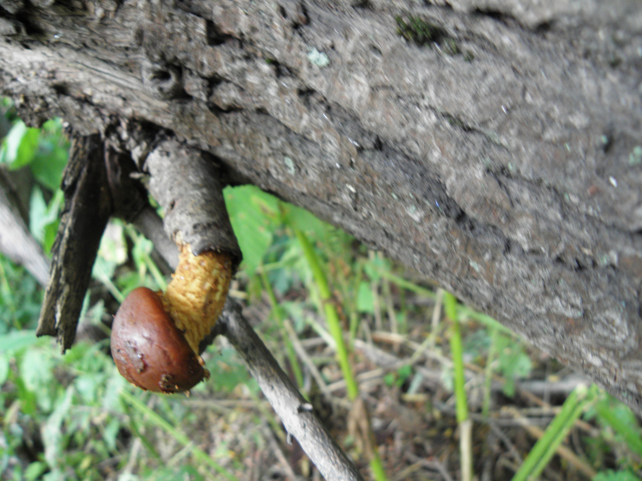 Описание гриба: Сахалин. Май. Шиитаке. Пророс через сучек.