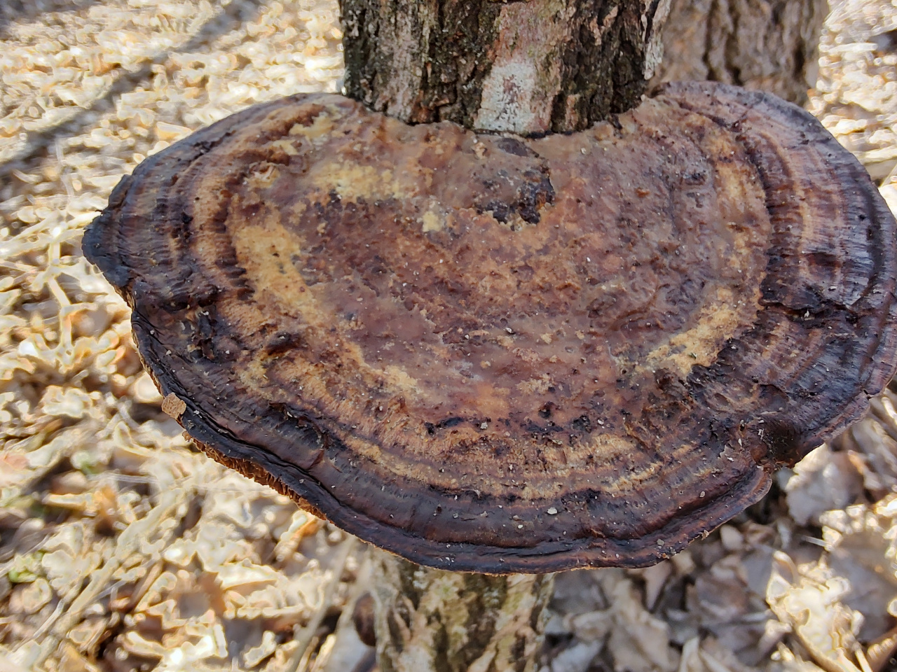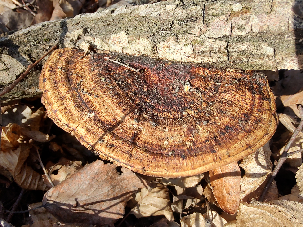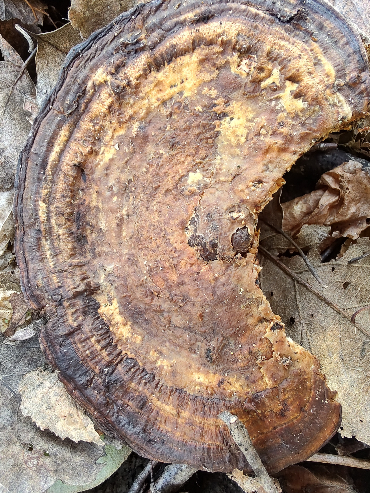 Описание гриба: Гриб растёт на мёртвом лиственном дереве и на крупных палках, лежащих на земле. Гриб мягкий, упругий, но ножом режется с трудом, как резиновый. Гименофор не пластинчатый и не трубчатый, а похож на какие-то лабиринты. Растёт в лиственном лесу, рядом липа, ольха, граб, дуб, орешник. 16.03.2026
