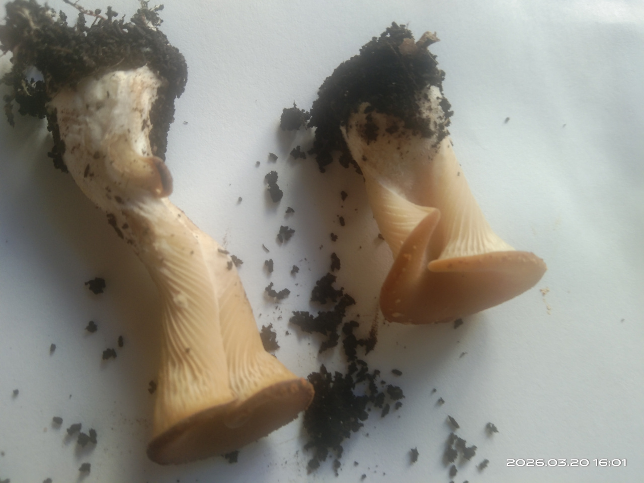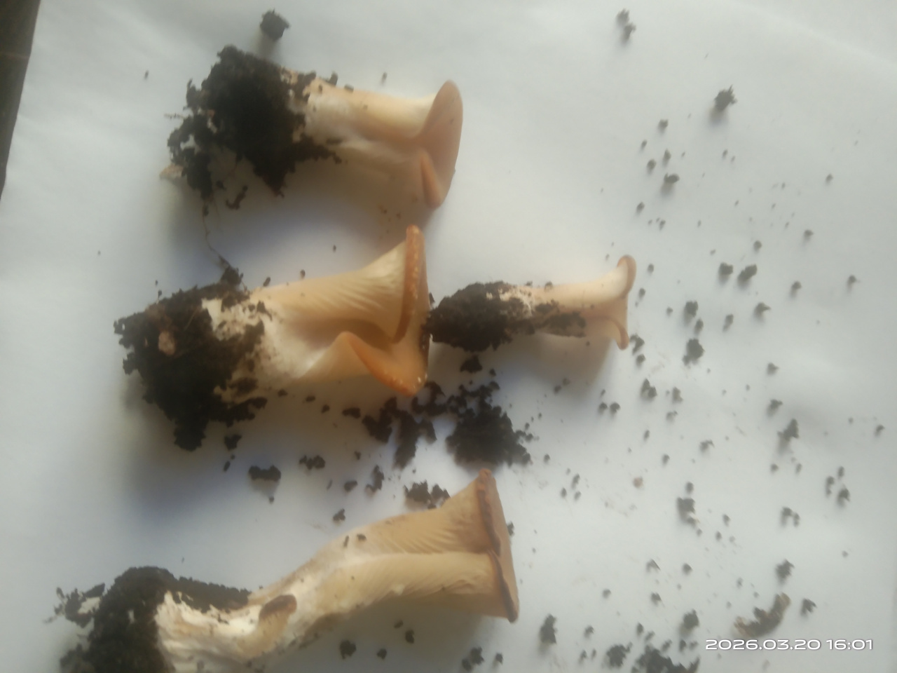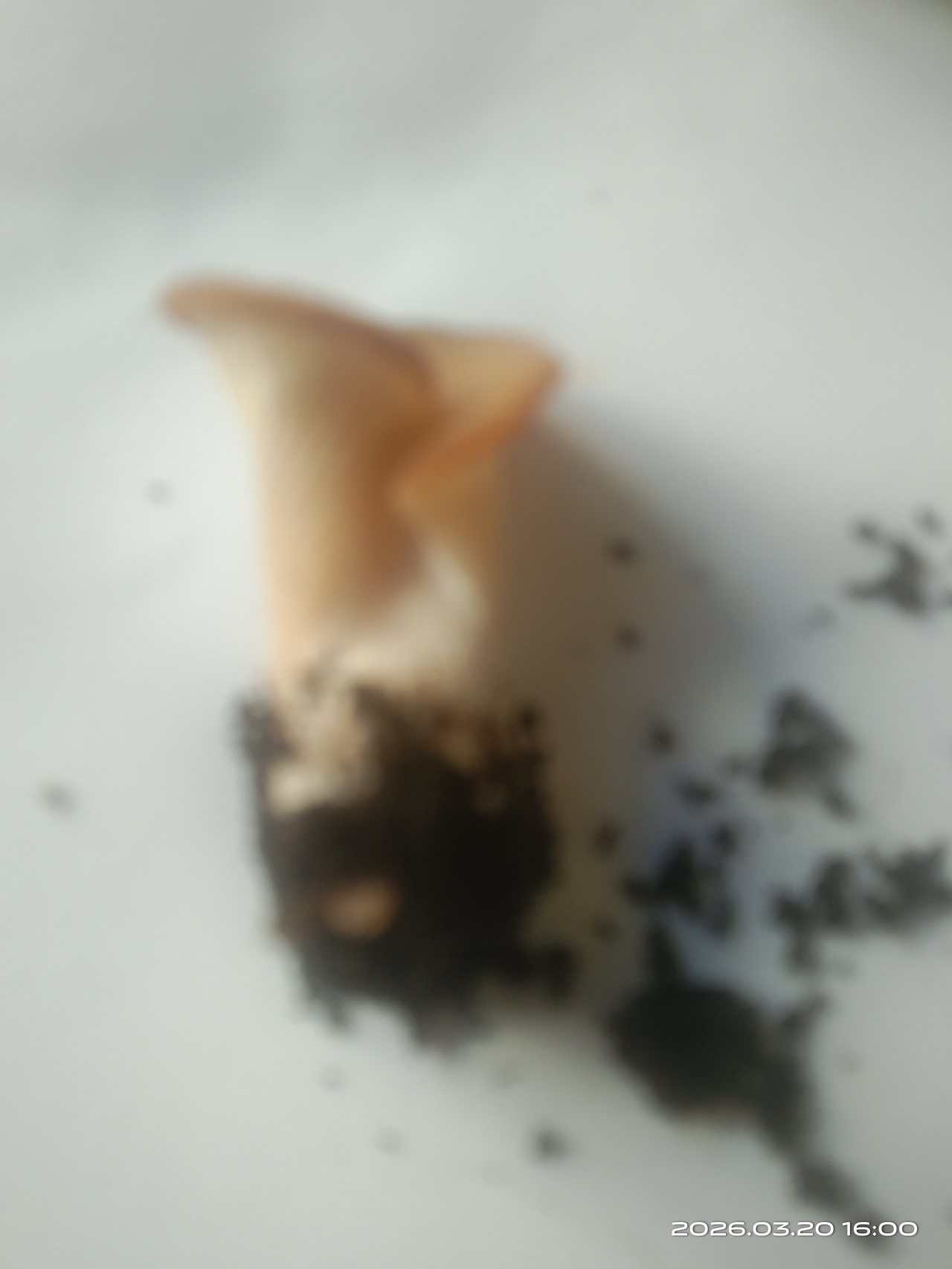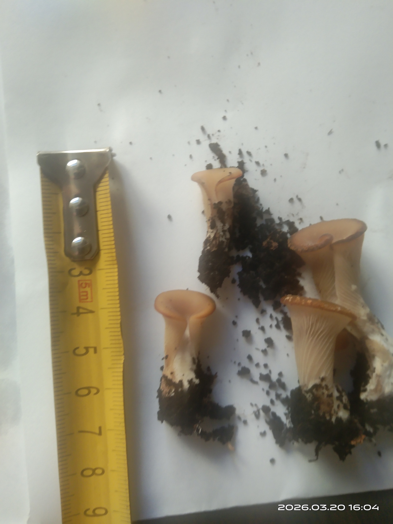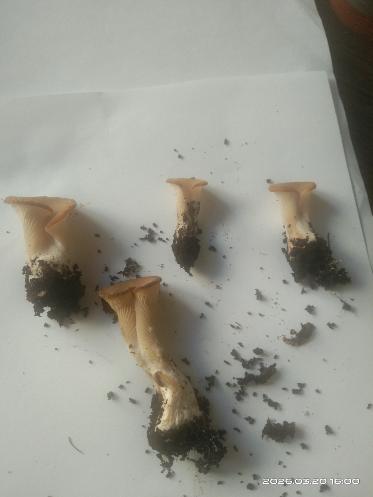 Описание гриба: Грибы одиночные, не крупные (1-5см), шляпка воронкообразная спиралевидная, небольшая, плавно переходящая в толстенькую крепкую ножку. Запах грибной, приятный, мякоть плотная, не млечная. Цвет бежевый, ножка светлее. Напоминают внешне вешенки, но спиральная шляпка. Выросли 20 марта в цветочном горшке с денежным деревом, около 7 штук.