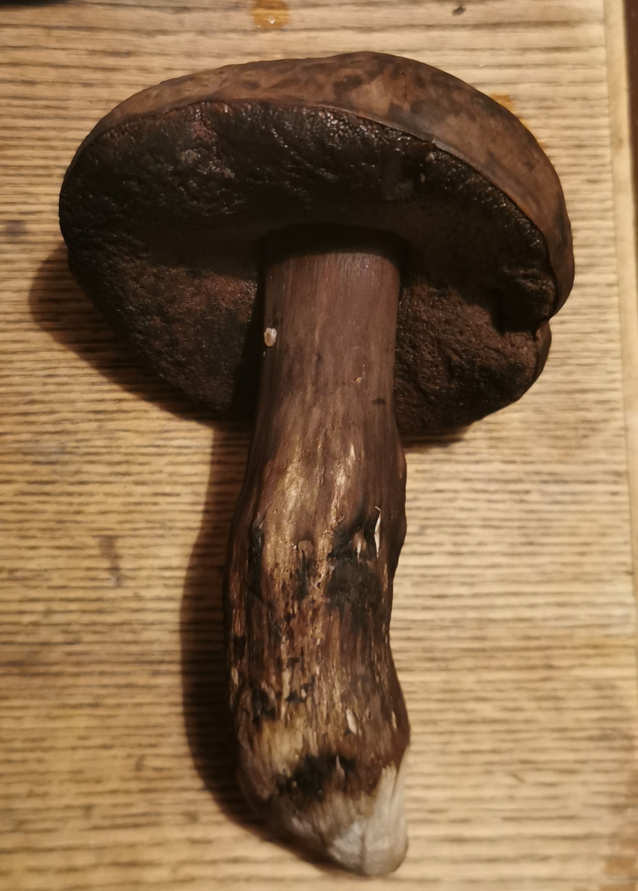Описание гриба: Приамурье, Хабаровск. Растет в дубниках не часто. Цвет гриба как снаружи, так и внутри монотонно-темный до черного. Оттенок цвета от темно-бурого до темно-феолетового. Возраст гриба на цвет не влияет. Запах грибной.