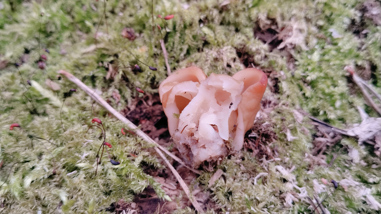Описание гриба: Грибы выросли на разлагающемся стволе лиственного дерева.