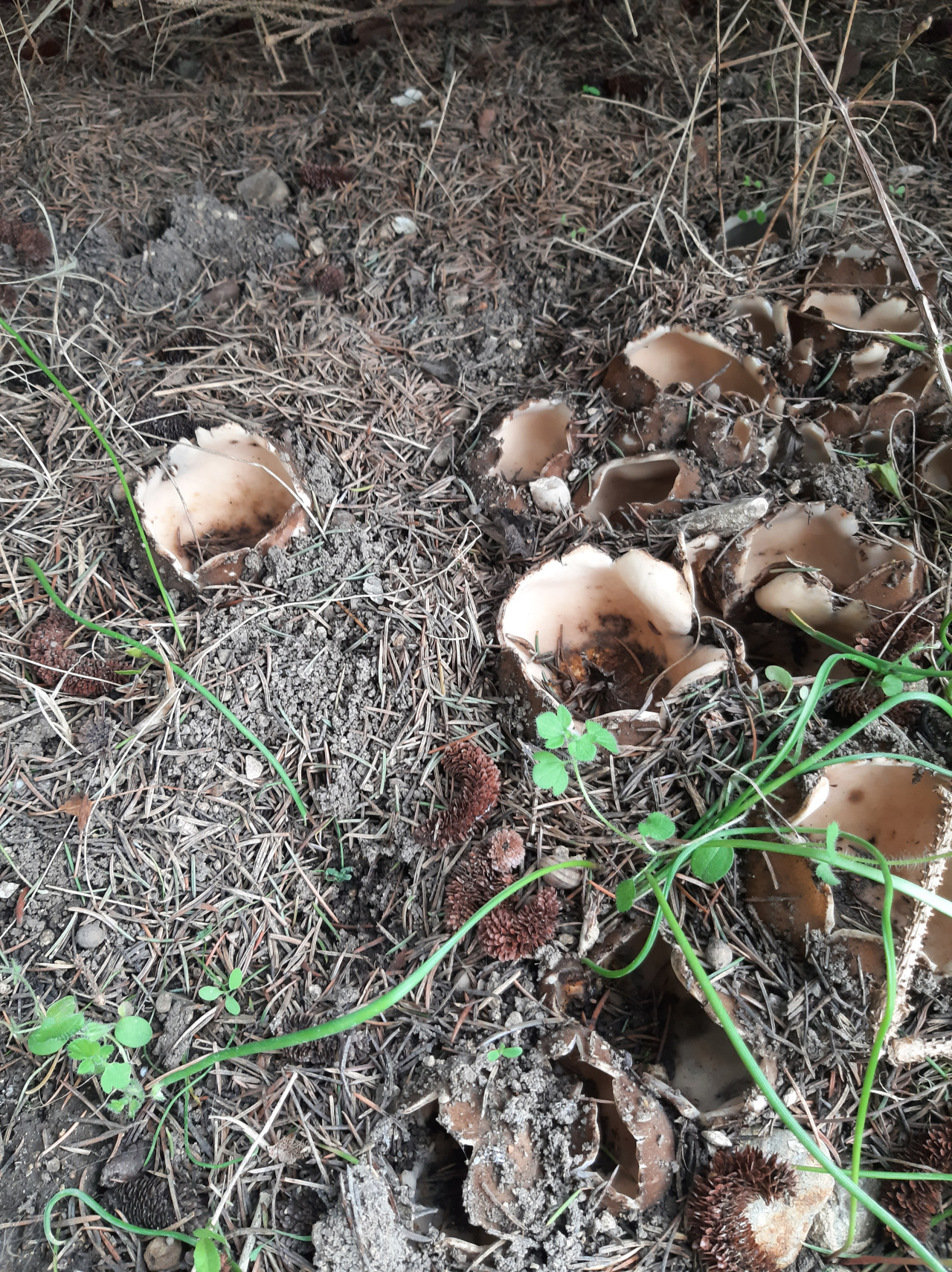 Описание гриба: Похоже на раскрытую сферу,выросли под елью во дворе.