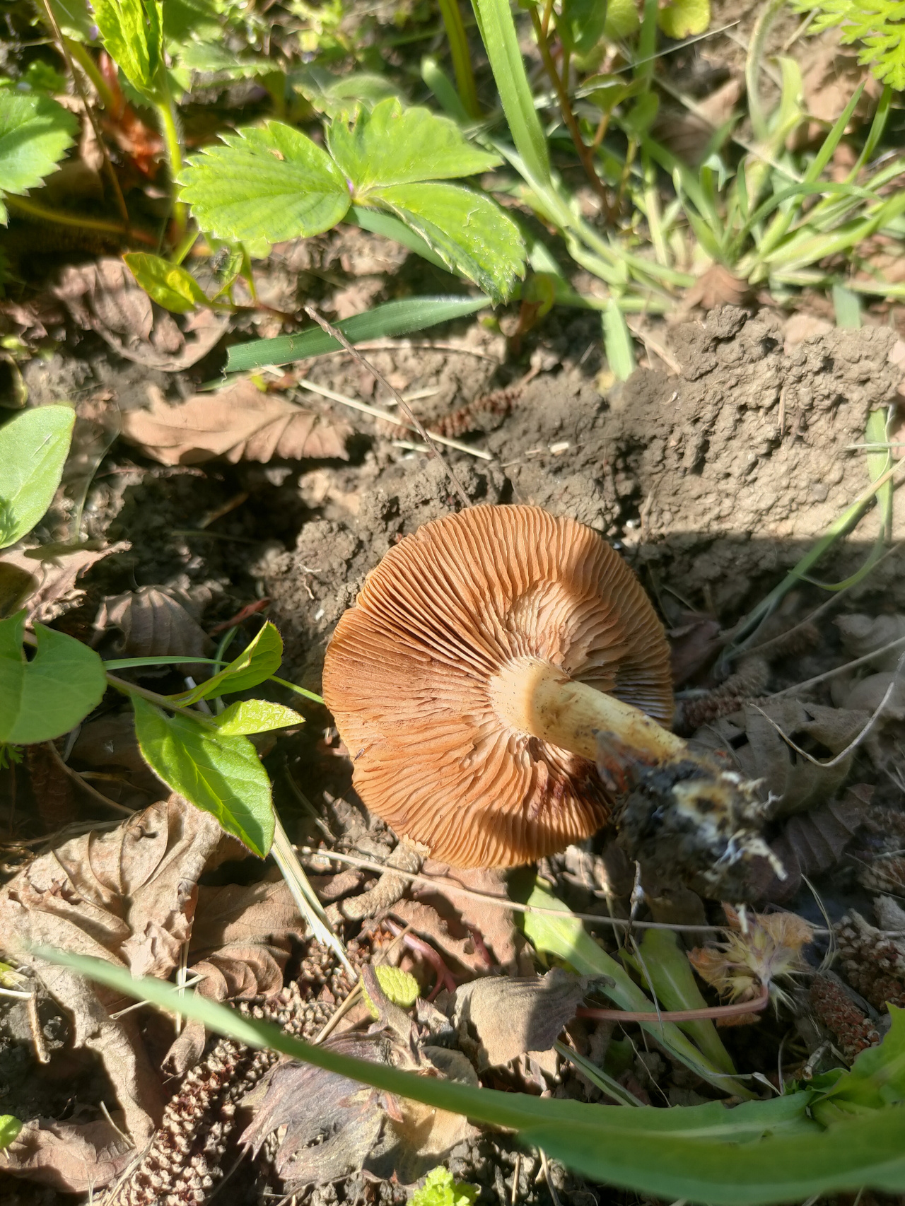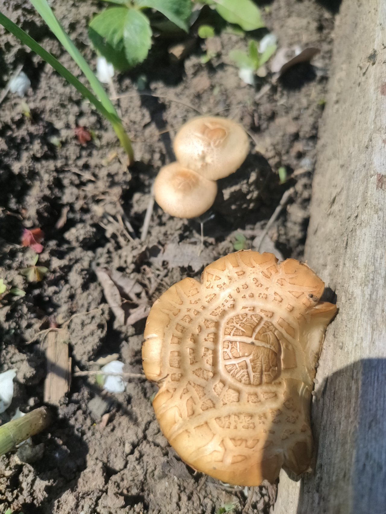 Описание гриба: Здравствуйте,подскажите ,что за грибы растут на даче,на грядке? Запах грибной,мясистый, Краснодар, съедобные или нет?