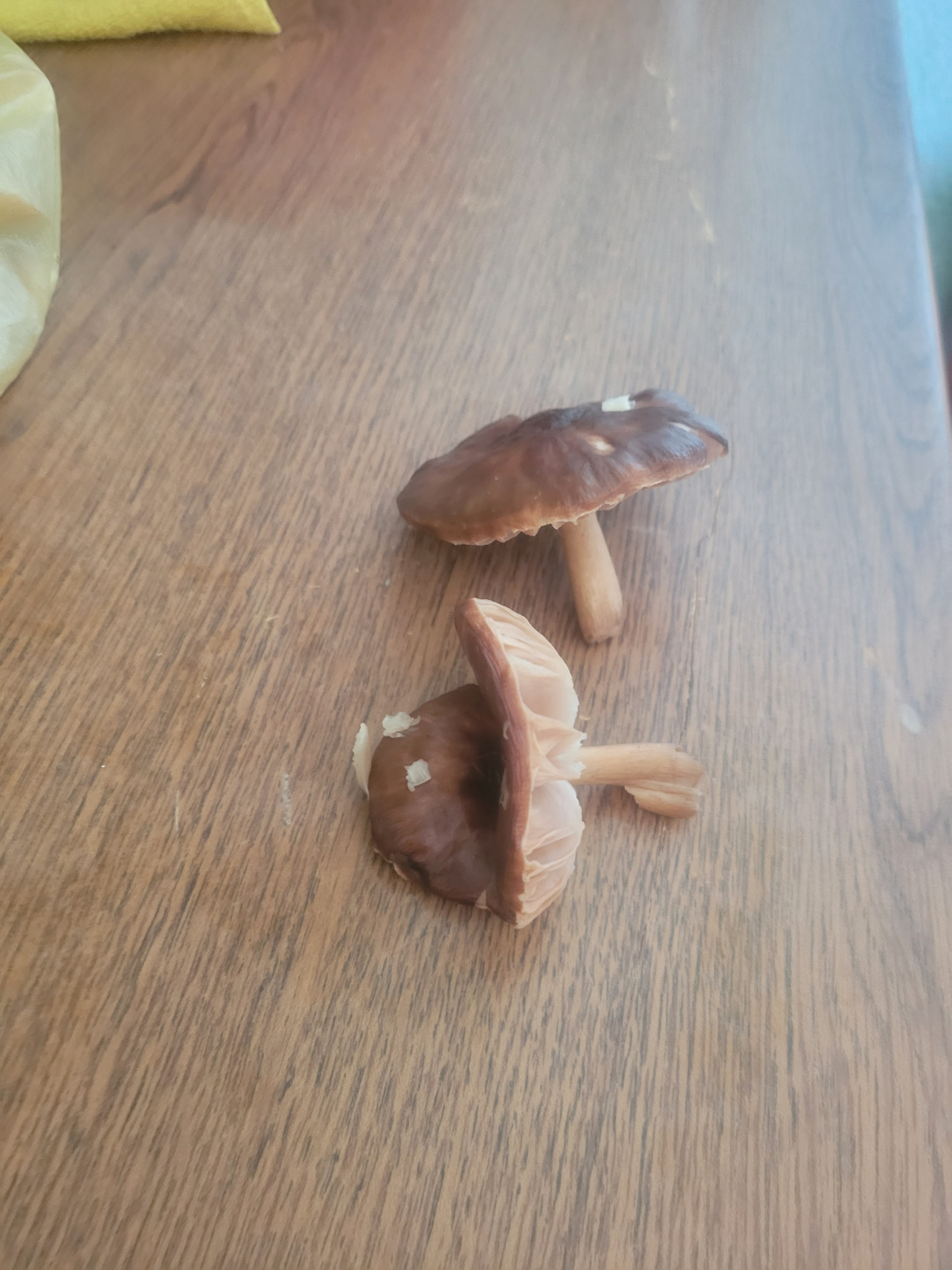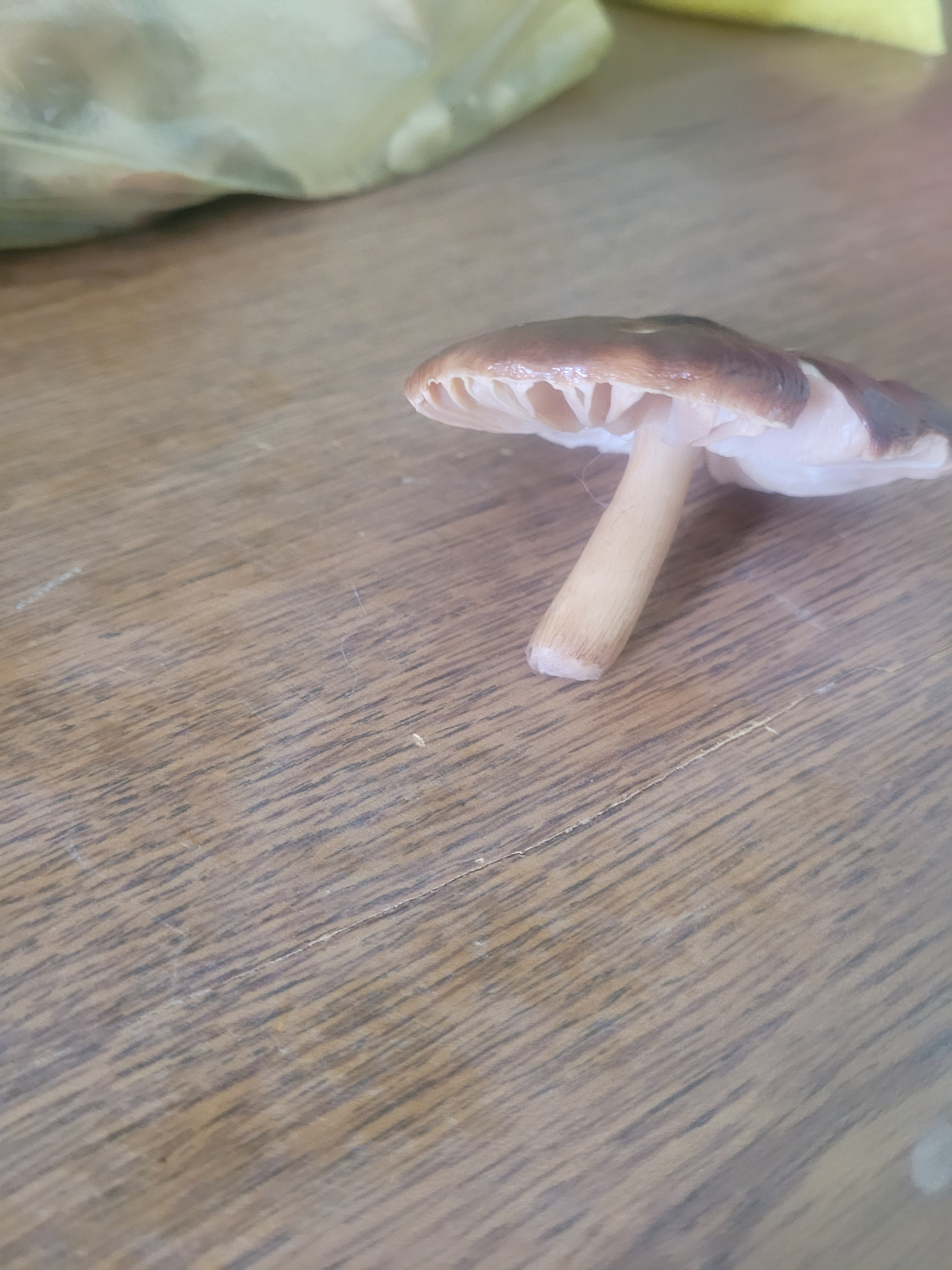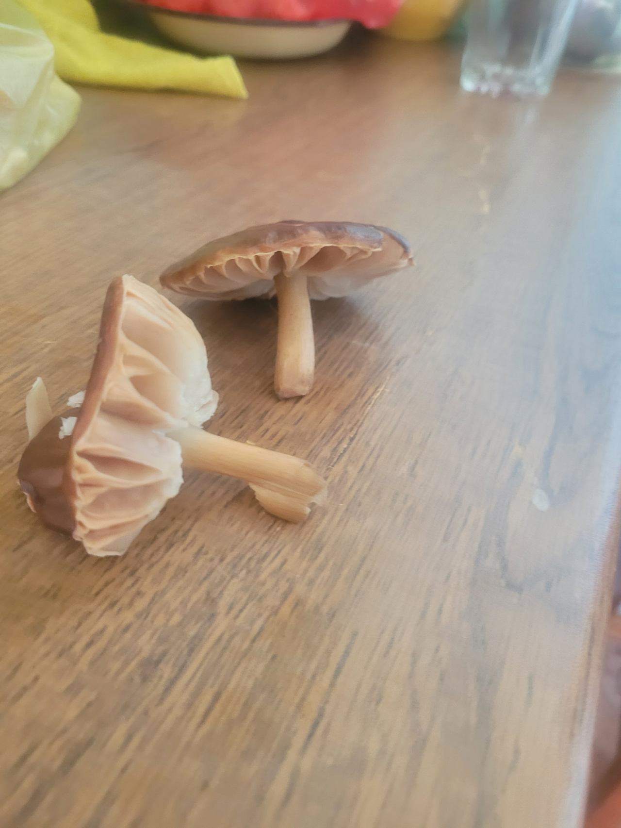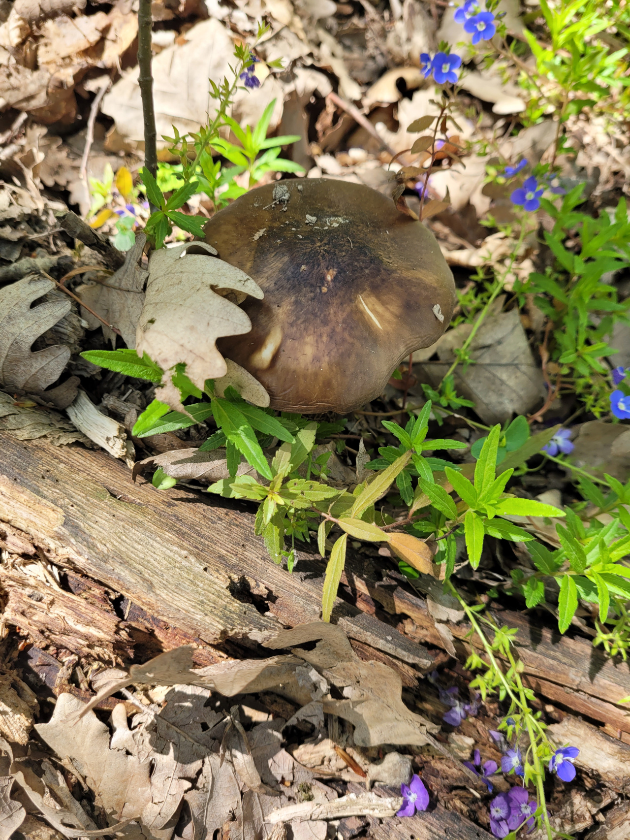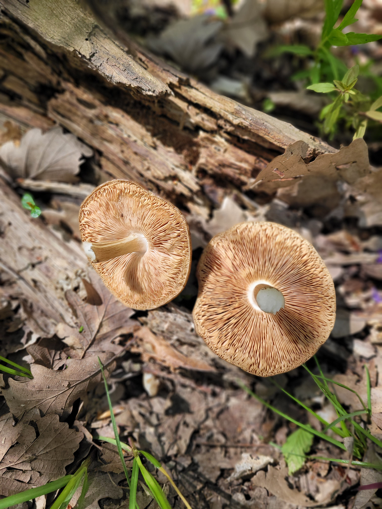Описание гриба: Шляпки темно-коричневая, пластинки редкие бело-коричневые, ножка тонкая, диаметр шляпки 7-8 см. Конец апреля 2026 г, в районе Неберджаевского водохранилища.